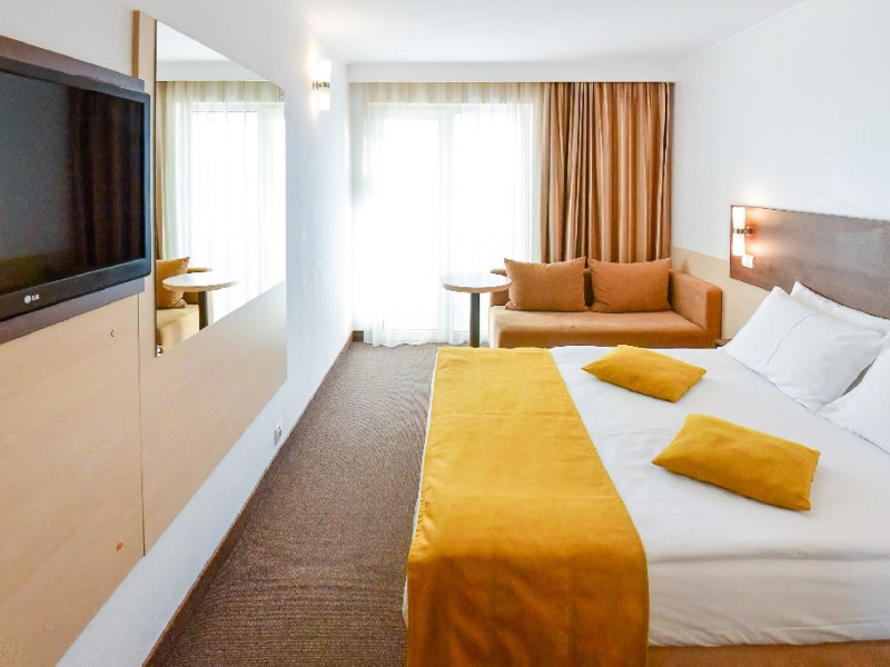 Conceptul All inclusive: - Piscina pentru adulti, umbrele si sezlonguri la piscina in limita locurilor disponibile (locurile sunt limitate iar alocarea sezlongurilor se face in ordinea sosirii la piscina), - Plaja privata, umbrele si sezlonguri la plaja in limita locurilor disponibile (maxim 2 sezlonguri/camera). - Loc de joaca pentru copii exterior, activitati pentru copii, muzica live, program artistic seara, wi-fi internet, pat bebe tip tarc la cerere, in limita disponibilitatii. - Seif in receptie, camera bagaje. - Centru Spa Wellness - serviciu contra-cost - Centru de conferinte - Camera pentru persoane cu dizabilitati - Rampa pentru persoane cu dizabilitati - Parcare gratuita in limita locurilor disponibile Observatii Accesul cu animale de companie este strict interzis. Este interzis gatitul in camera de hotel si accesul cu arzatoare, spirtiere, resouri, aragaze si plite.