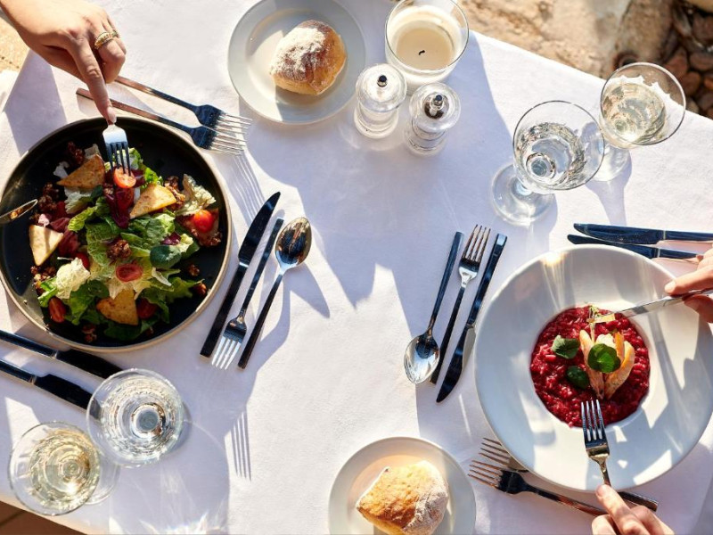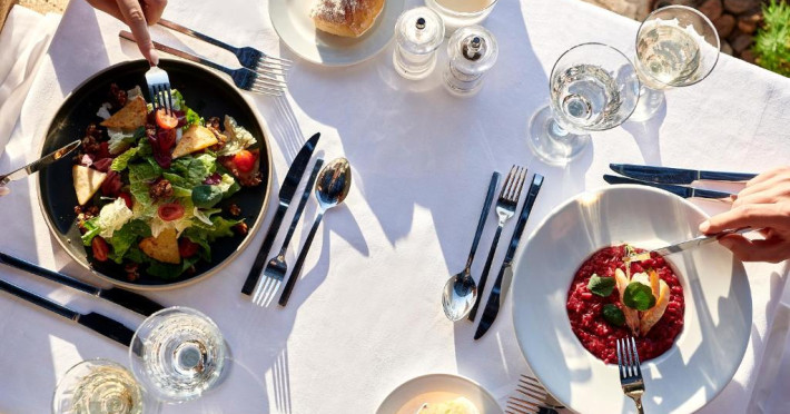 Restaurantul principal al complexului all inclusive Creta Panorama servește un bufet bogat. Restaurantul italian se remarcă prin preparatele sale pe bază de paste, iar la taverna Zorbas, oaspeții pot savura preparate grecești traditionale. Datorită varietății de facilităti oferite de hotel, oaspetii pot practica numeroase sporturi, printre care tenis de masă, minigolf, volei, baschet, tir cu arcul, pétanque, gimnastică aerobică, gimnastică acvatică si biliard. De asemenea, complexul oferă hamace pe plajă, disponibile la un cost suplimentar.