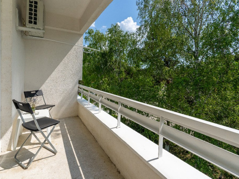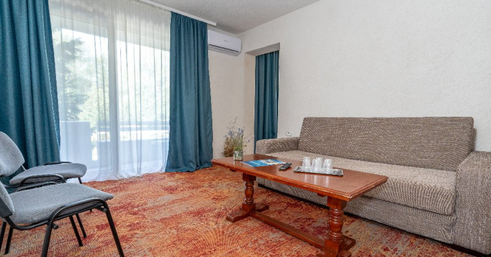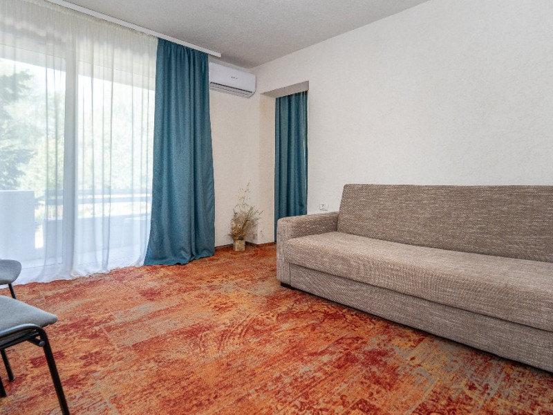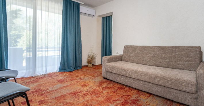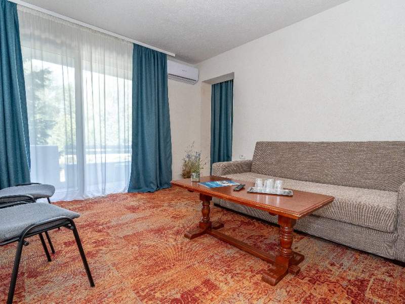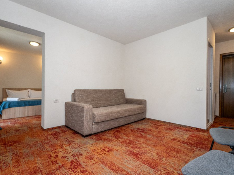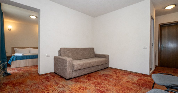 Apartamentul este un ansamblu compus din 1 dormitor cu pat matrimonial si un living cu o canapea extensibila si baie proprie Recomandare: Apartamentul poate gazdui pana la 3 adulti, sau 2 adulti si 2 copii. Dotari: sistem de acces in camera pe baza de cartela/cod de acces, aer conditionat, TV LCD, seif, baie cu cabina de dus, cosmetice hoteliere, balcon cu mobilier.