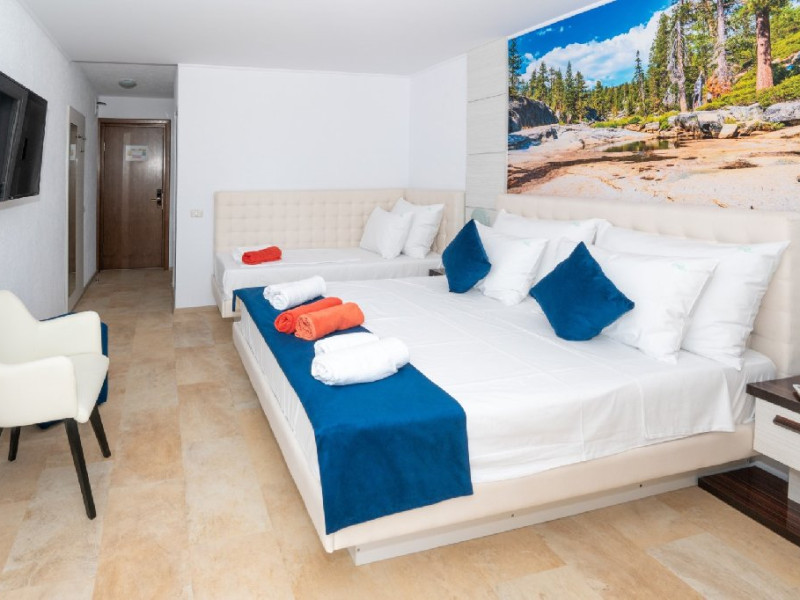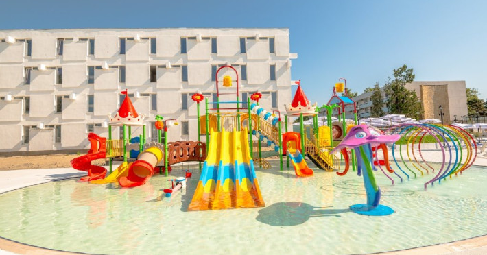 Servicii incluse (all inclusive): Piscina pentru adulti si piscina pentru copii; Umbrele si sezlonguri la piscina in limita locurilor disponibile (alocarea sezlongurilor se face in ordinea sosirii la piscina); Parcare in limita locurilor disponibile; Animatori; Muzica live; Umbrele si sezlonguri la plaja in limita locurilor disponibile (alocarea sezlongurilor se face in ordinea sosirii la plaja); prosoape plaja/piscina disponibile in camera; Internet WIFI; Pat bebe tip tarc la cerere, in limita disponibilitatii; Beach Bar All inclusive. Plaja privata este situata la aproximativ 800 m fata de Hotel.