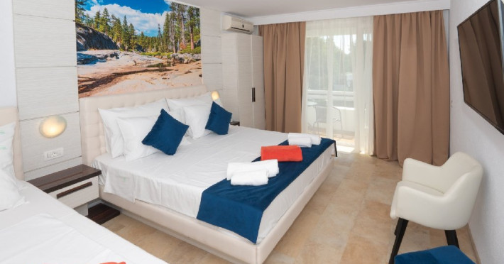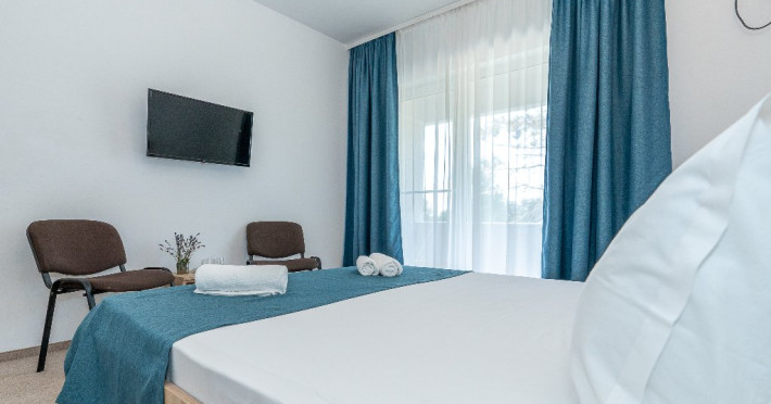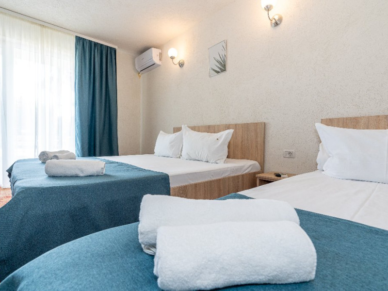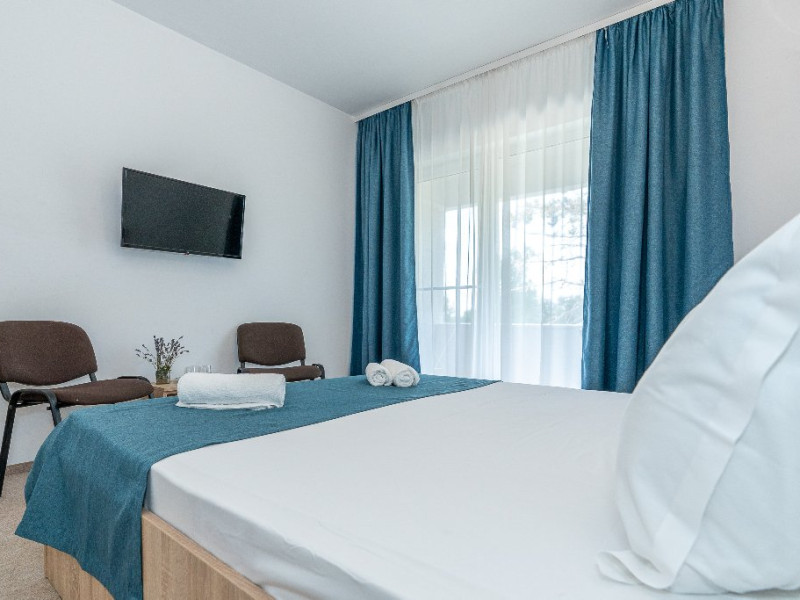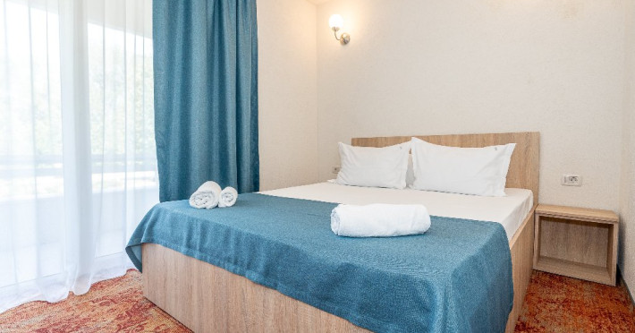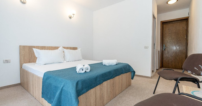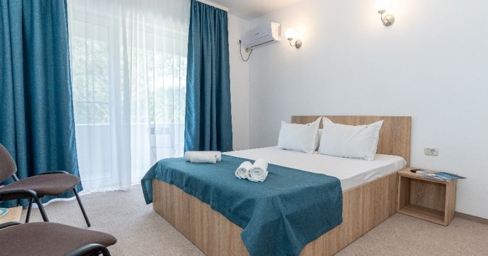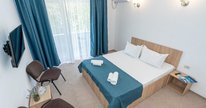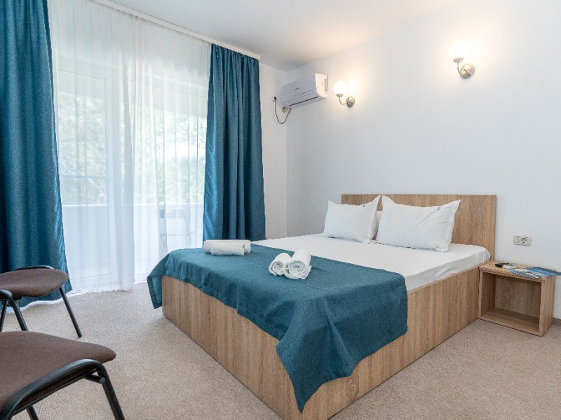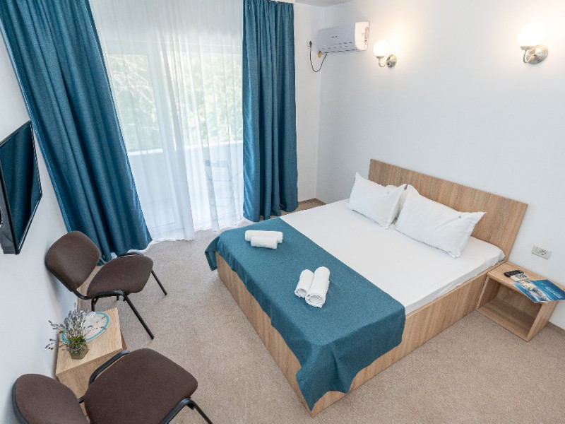 Hotel Irina Camera dubla matrimoniala are un pat matrimonial (160/200 cm). Recomandare: Camera Dubla poate gazdui 2 adulti si 1 copil. Dotari: sistem de acces in camera pe baza de cartela/cod de acces, aer conditionat, TV LCD, seif, baie cu cabina de dus, cosmetice hoteliere, balcon cu mobilier de terasa pentru camerele situate la etaj.Hotelul nu ofera paturi suplimentare.