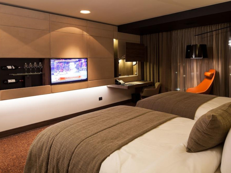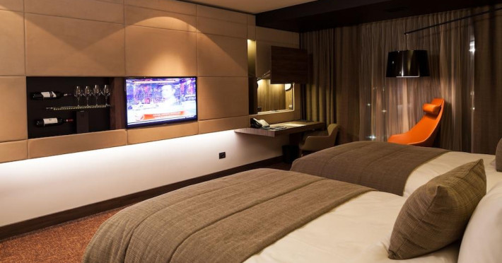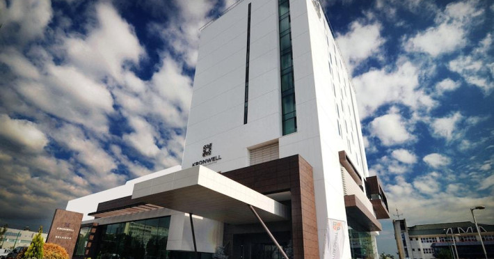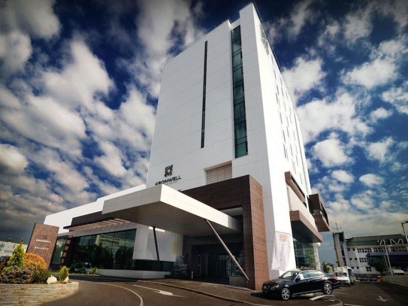 Located in the heart of Romania, in the multicultural top touristic destination of Brasov, guarded by the Carpathians and offering outdoor tourism activities in the Poiana Brasov ski resort, Kronwell invites you to style up your being away from home within a desirable concept. While being surrounded by fortified churches, touristic highlights and the castle witnessing the legend of Dracula, Brasov attracts travellers from all over the world to explore the mixture of unspoiled nature and contemporary urban life.Business room is the leading room category with generous 34 sqm of space and high-end technology such as Smart TV, media hub, free wi-fi, temperature and dimming lights control. This carefully designed accommodation also features an exclusive wine collection, rainforest shower, floor heating as well as complimentary luxury Zenology amenities. Velvetry bathrobe and sleepers and an evening turndown is provided as well as a state of the art king size bed with Serta Perfect Sleeper and hypo-allergenic linen for a good and healthy night sleep.Adagio restaurant with its famous Chef offers menus infused with novelty and creativity serving local and international cuisine.This is a modern building.LargeEach corner at Kronwell is designed to enhance refinement. Everything you see, touch and feel is carefully chosen to welcome you. Our harmonious environment with a warm intimate atmosphere will strike you with its elegance and precise outline. When leisure becomes lifestyle and business becomes pleasure within 81 luxurious rooms and 5 high tech modular meeting studios. Celebrating beauty elements in the 1500 sqm boutique BELAQVA Spa. Secured underground and ground-level parking with up to 80 parking lots and coach access. Tasting contemporary culinary delights, flavoured drinks within our restaurant, lounge and bar. Kids adventure with Happy Shark in the large playground under the care of dedicated staff. Exploring unspoiled nature and culture in Brasov surroundings ? outdoor tourism activities.This is a newly opened property - Feb 2013. Indoor pool will be available from June 2013.
