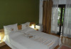 CAMERA DUBLA TWIN Camera dubla twin este dotata cu 2 paturi separate (90x200cm), si este dispusa la etajul cladirii, avand accesul dintr-o terasa comuna generoasa, mobilata cu scaune si mese de terasa si vedere spre dealurile ce marginesc statiunea. Numarul maxim de persoane ce pot fi cazate intr-o camera dubla twin sunt 2 adulti.