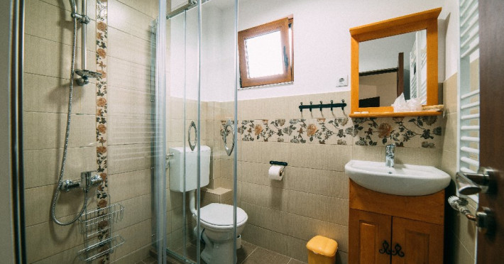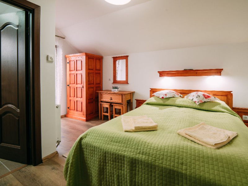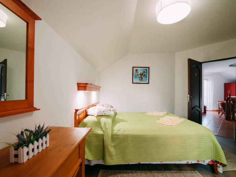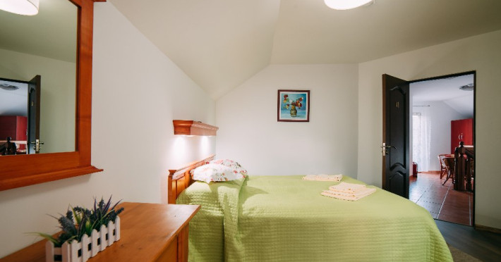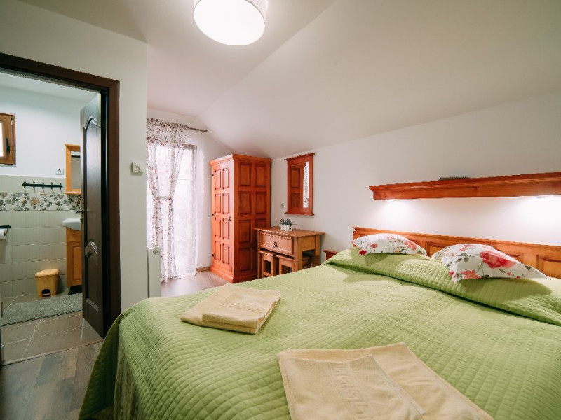 Camerele duble matrimoniale din Casa Nela sunt situate la etaj, au o suprafata de 17 mp si baie in camera.
