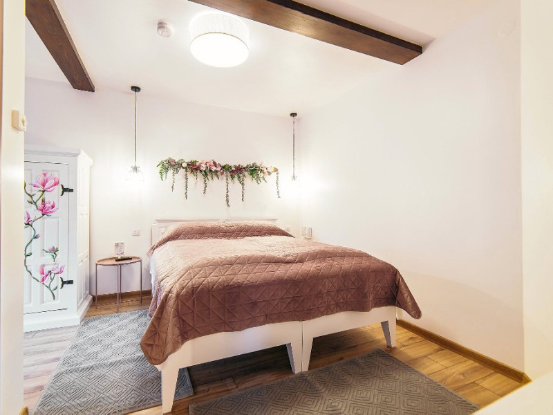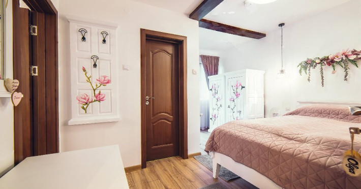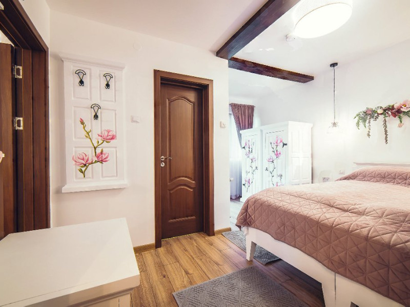 Camerele duble matrimoniale din Casa Olga sunt situate la etaj, au o suprafata de 17 mp si baie in camera.
