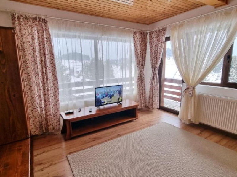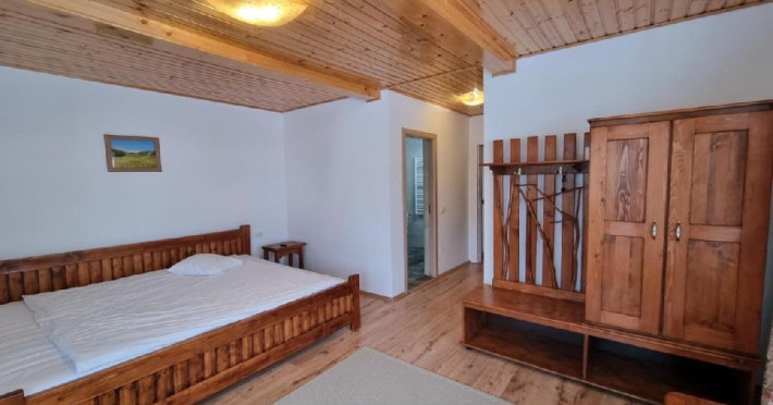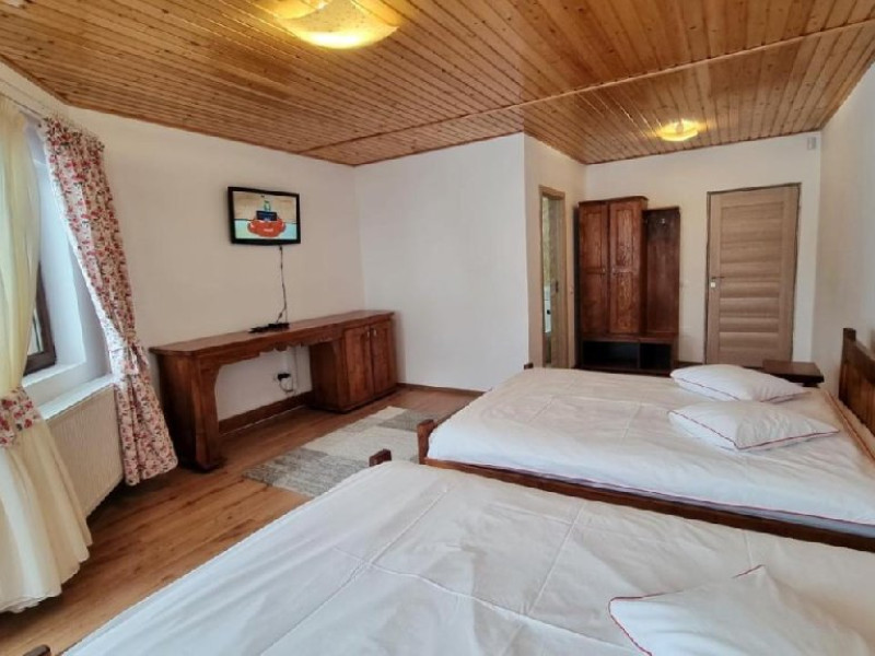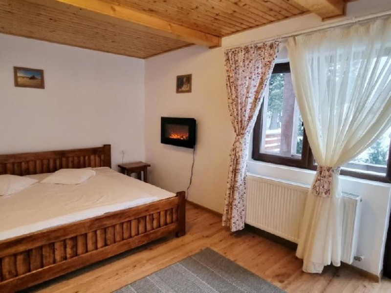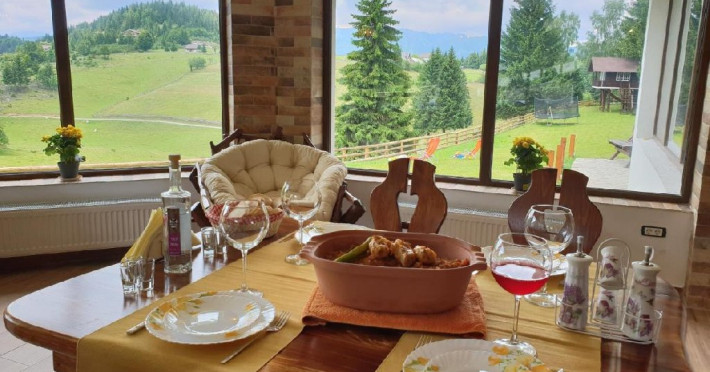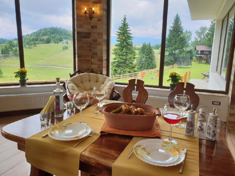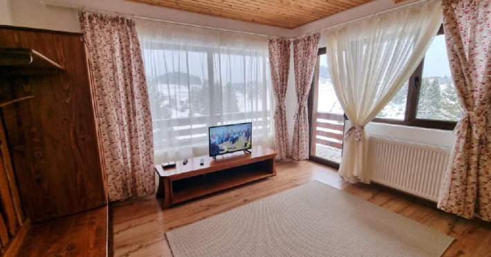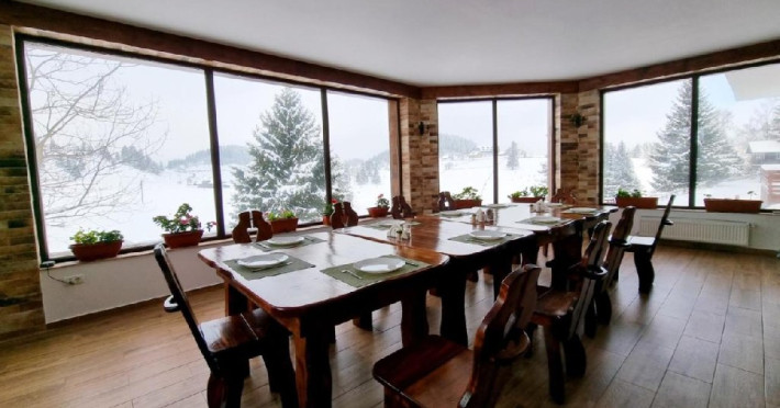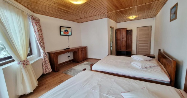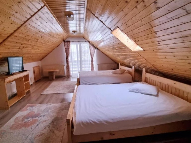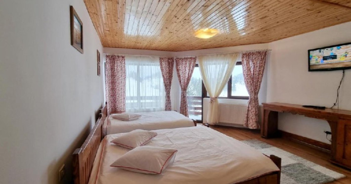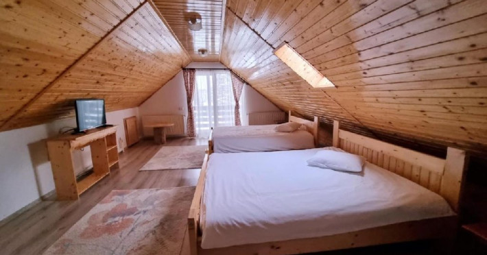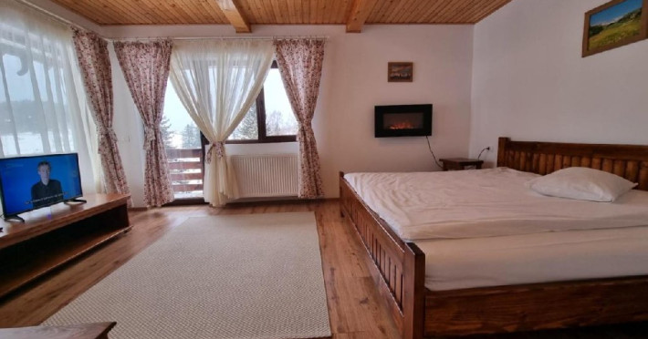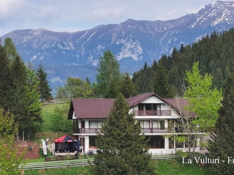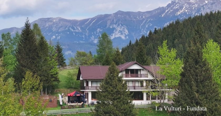 INFORMATII GENERALE La Vulturi este situata in Fundata la o altitudine de 1300 m, la 9 km de Castelul Bran. DESCRIERE UNITATE DE CAZARE Datorita pozitionarii deosebite, locatia este apreciata de iubitorii de trasee montane, ciclisti si familii care cauta relaxare intr-un cadru natural spectaculos. FACILITATI UNITATE Locatia dispune de parcare, internet Wi-Fi, terasa si gradina, precum si salon pentru servirea micului dejun. DESCRIERE CAMERE Camerele duble dispun de balcon si pat matrimonial. Camera cvadrupla ofera doua paturi duble si un balcon cu vedere catre munte. Toate camerele dispun de TV, baie proprie. Vila Acvila are un living, un dormitor separat, baie proprie echipata cu produse de igiena. Bucataria tip chicineta dispune de frigider, cuptor cu microunde, plita electrica, aparat filtru de cafea si vesela. Vila dispune si de Wi-Fi gratuit si 2 televizoare cu ecran plat. Terasa exterioara include mobilier de gradina unde oaspetii cabanei se vor bucura de o priveliste minunata cu un confort sporit de intimitate. LOCALIZARE La Vulturi este situata in Fundata la o altitudine de 1300 m, la 9 km de Castelul Bran. ATRACTII TURISTICE Biserica Veche din Fundata (1830), Cheile Dambovicioarei, satele Sirnea, Fundatica, comunele Fundata, Moieciu, Bran; Pestera Dambovicioara, Castelul Bran. POLITICI Nu sunt permise animalele de companie. SERVICII DE MASA In cadrul locatiei se poate servi micul dejun. FACILITATI COPII Copiii mai mici de 3 ani nu sunt acceptati in locatie.