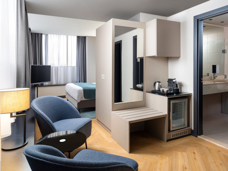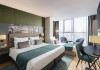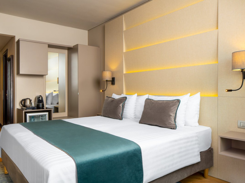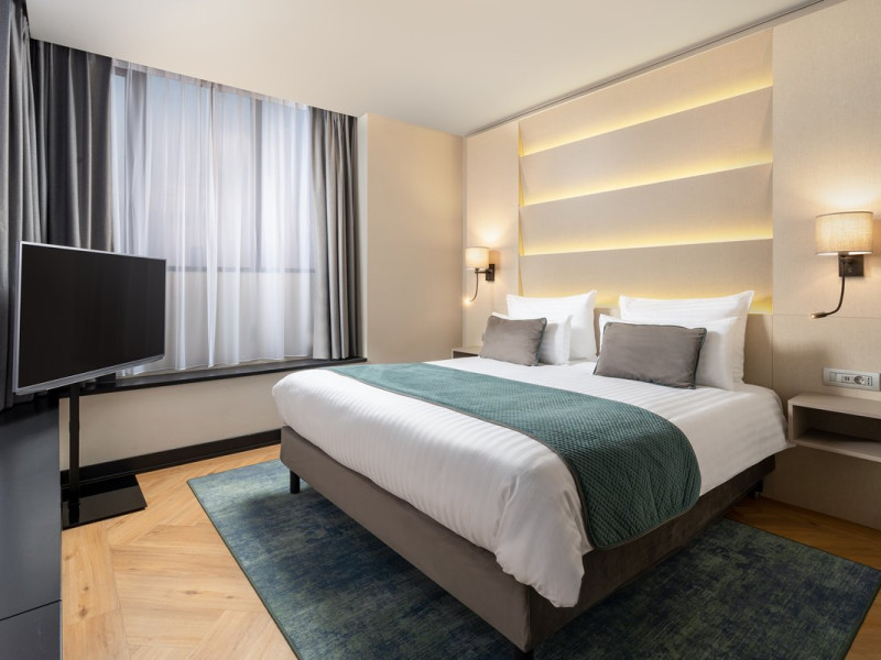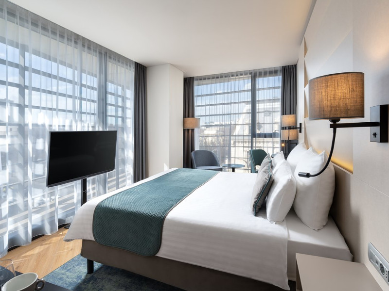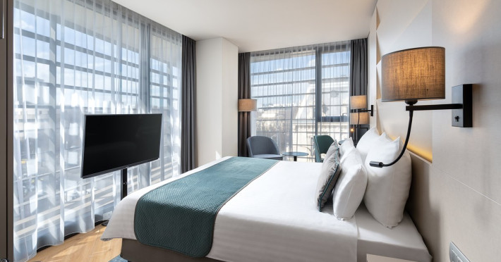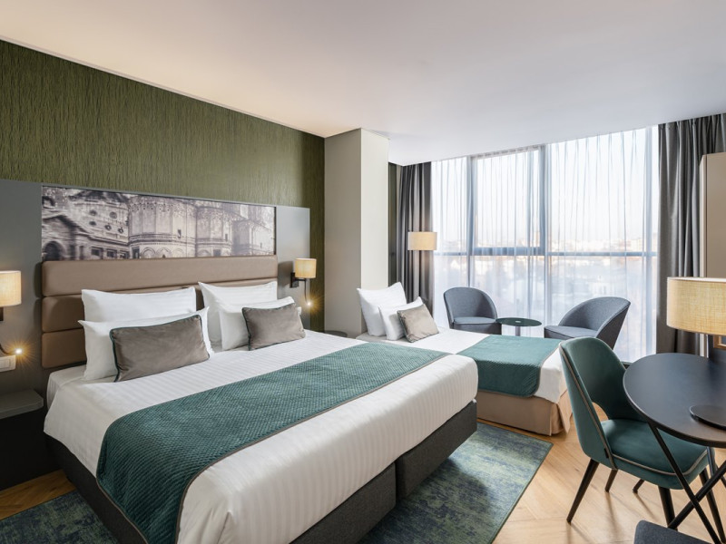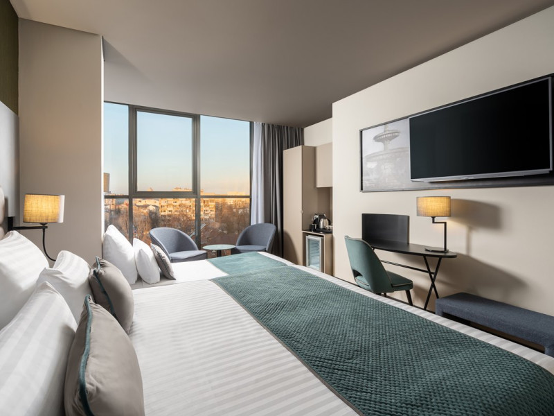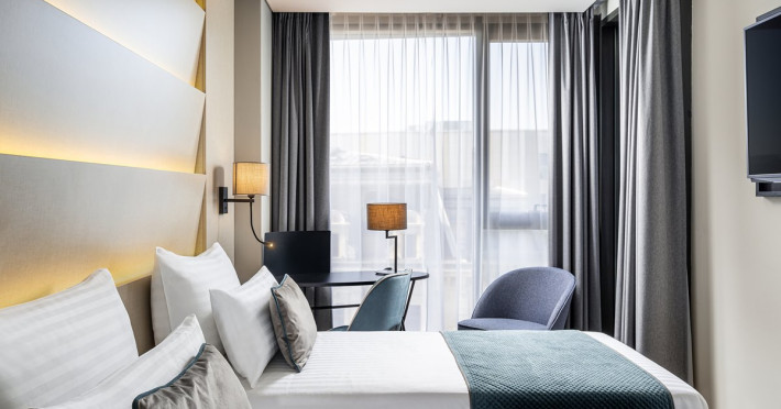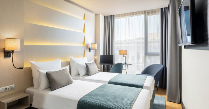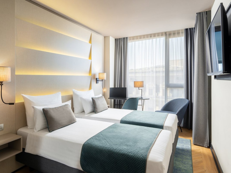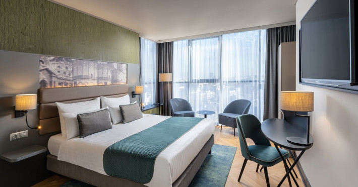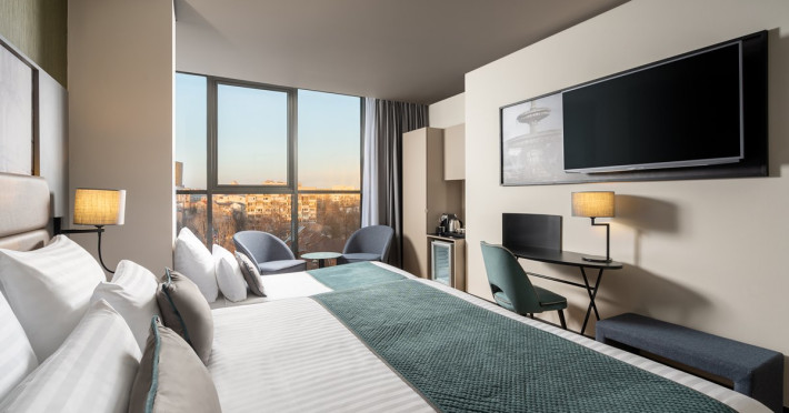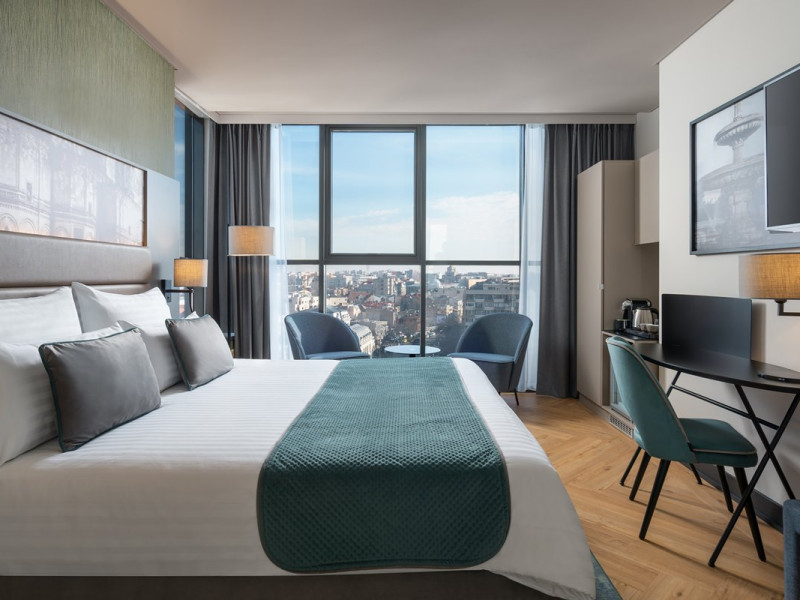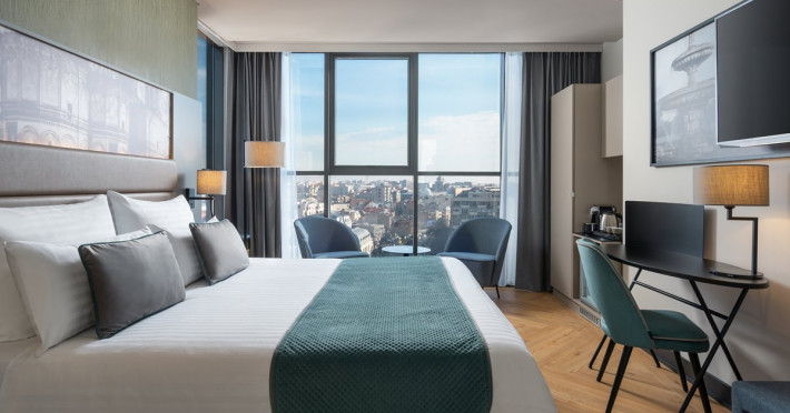 The Leonardo Hotel Bucharest City Center is locate din the city center, with beautiful sights next to it. The reception is opened for its guests 24 hours and is available in more languages. To keep yourself in shape, the hotel offers their guests a gym and for a chill evening the guests can visit the hotel bar. For business travelers the hotel has meeting rooms and business center, equipped with the necessary equipment. The hotel offers for an extra cost an airport-shuttle, laundry and ironing services and room services.