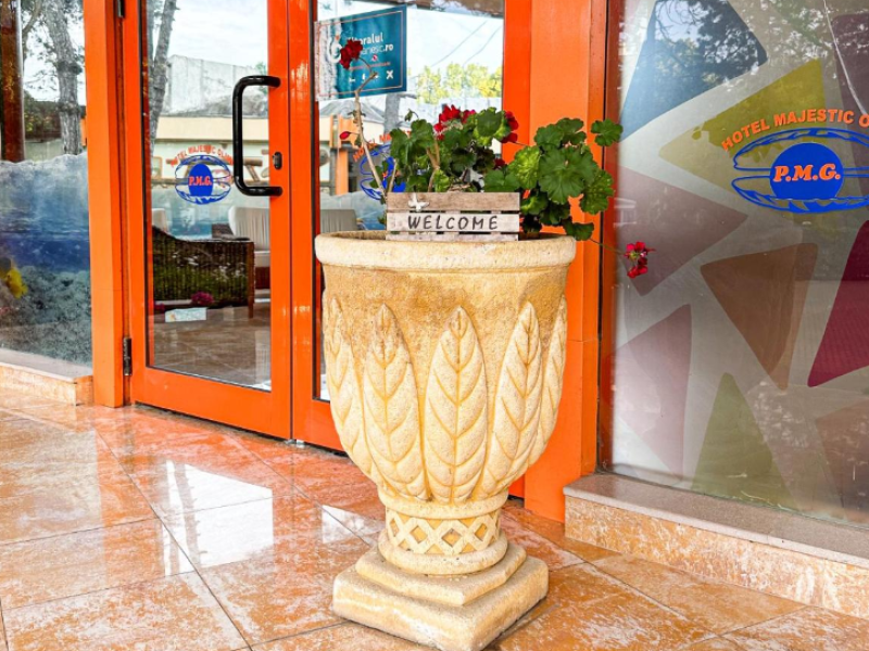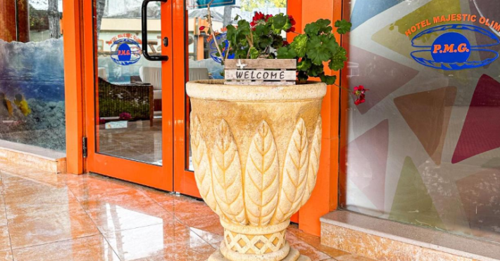 Hotel Majestic 3 stele situat in zona centrala a statiunii Olimp, la mica distanta fata de plaja, in vecinatatea hotelurilor Pam Beach si Amfiteatru. Datorita dispunerii perpendiculare pe linia tarmului, majoritatea camerelor au vedere la mare, repartitia lor facandu-se de eeceptie, in momentul cazarii. Hotel Majestic Olimp este construit pe 13 etaje si a fost renovat complet in anul 2002. Masa poate fi servita in restaurantul hotelului care ofera preparate apartinand bucatariei romanesti si internationale. Pe terasa restaurantului sunt organizate in unele seri spectacole cu muzica live. Pe langa facilitatile de cazare si masa, hotel Majestic Olimp ofera oaspetilor sai multiple posibilitati de petrecere a timpului: piscina exterioara, piscina pentru copii incalzita pe toata perioada de functionare, sala de fitness, sauna, gradina si locuri de joaca pentru copii (interior si exterior). Incepand cu vara 2020 Hotel Majestic Olimp se alatura hotelurilor care ofera servicii de tip all inclusive, cu mic-dejun, pranz si cina servite sub forma de bufet suedez.