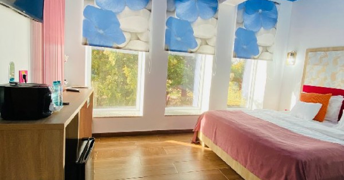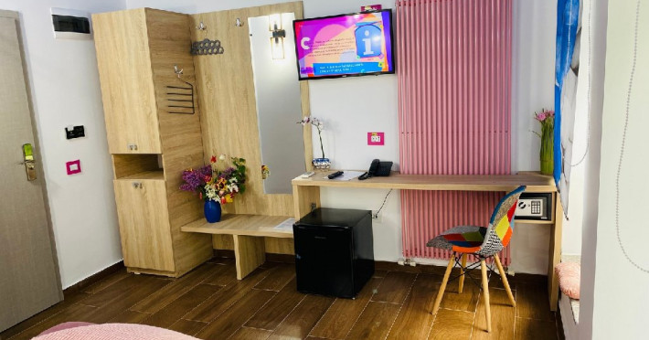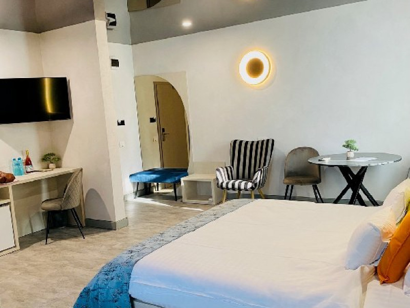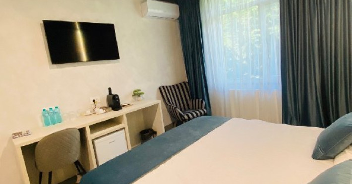 Denumirea camerelor: SINGLE EXECUTIVE: Corp nou, construit in 2020, mobilier modern, pat Queen (160 x 200 cm), Samsung Smart TV + Netflix, produse cosmetice EcoNatural, oglinda de machiaj si uscator de par, seif, aer conditionat, minibar, prosoape de plaja gratuite, espressor Caffisimo.