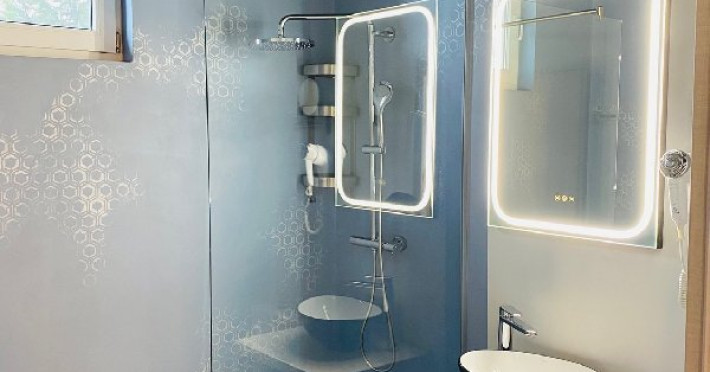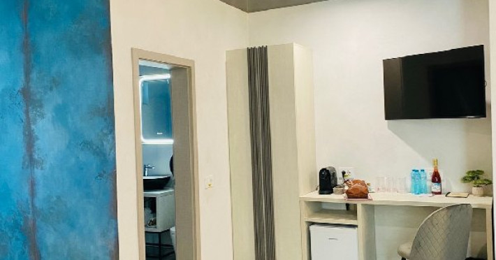 DOUBLE EXECUTIVE: Corp nou, construit in 2020, mobilier modern, pat Queen (160 x 200 cm), Samsung Smart TV + Netflix, produse cosmetice EcoNatural, oglinda de machiaj si uscator de par, seif, aer conditionat, minibar, prosoape de plaja gratuite, espressor Caffisimo.