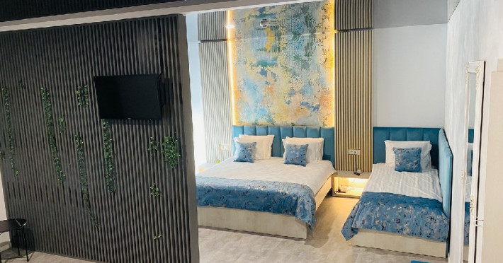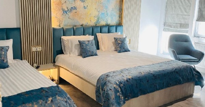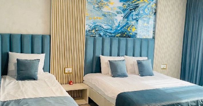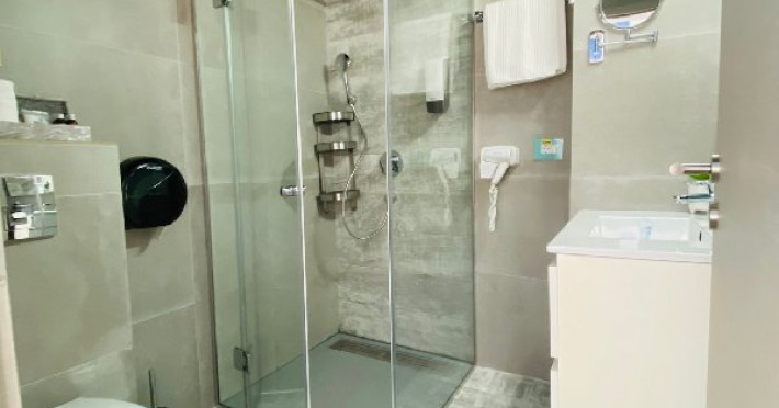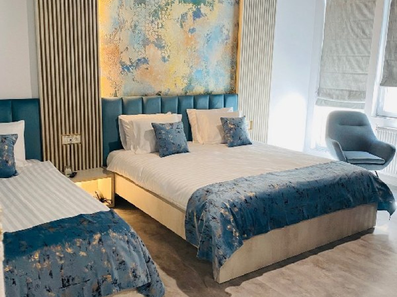 TRIPLE EXECUTIVE: Corp nou, construit in 2020, mobilier modern, pat Queen (160 x 200 cm) + Single (90 x 200 cm), Samsung Smart TV + Netflix, produse cosmetice EcoNatural, oglinda de machiaj si uscator de par, seif, aer conditionat, minibar, prosoape de plaja gratuite, espressor Caffisimo. APARTAMENT: 2 paturi duble extra-large (185x200cm) sau 1 pat dublu si doua twin, aer conditionat, minibar, televizor LCD, saltea SuperOrthoLux Optima, cabina de dus cu hidromasaj, uscator de par, prosoape de plaja gratuite.