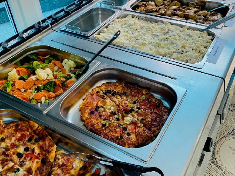 Weekend Cina (sambata-duminica 17:00-18:30): meniu special cu preparate la gratar, peste proaspat, selectie de pizza, paste, aperitive, salate, dulciuri fel de fel, cocktailuri, vin alb si rose, bere, prosecco, bauturi alcoolice (in functie de tematica), bauturi racoritoare carbogazoase si necarbogazoase. Tematica se va afisa in fiecare saptamana la receptie.