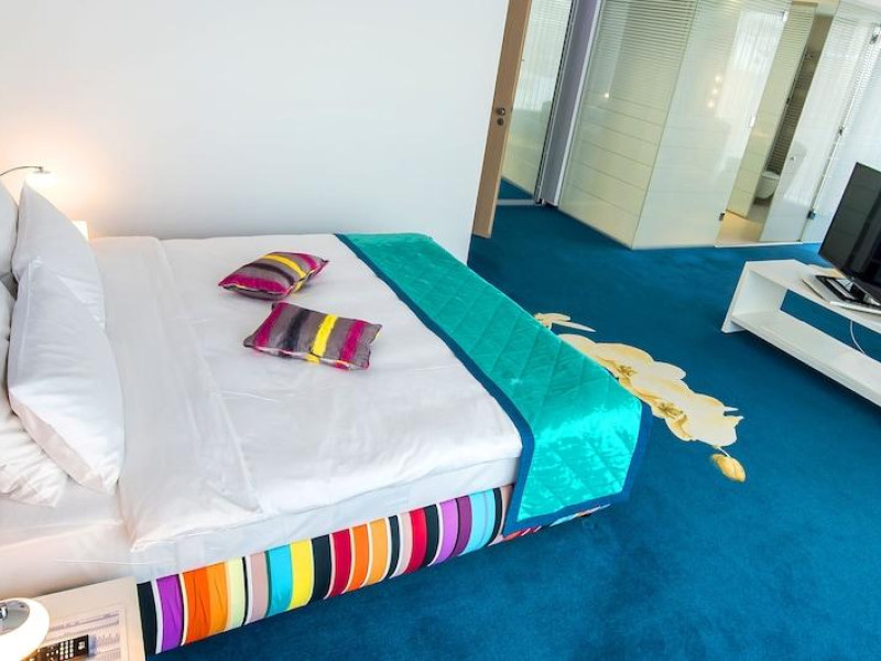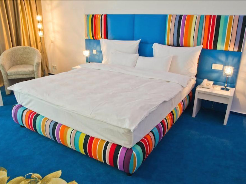 Marshal Garden is a contemporary 5-star property offering stylish accommodation in the heart of Bucharest. Highlights include an international restaurant, gym and free Wi-Fi. Bucharest is steeped in history, as evidenced by its impressive architecture - ranging from medieval, neoclassical and Art Nouveau through to imposing communist-era buildings and sleek, modern structures. Nearby places of interest include the National Museum of Art of Romania, the Romanian Athenaeum and the imposing Palace of the Parliament, which houses the National Museum of Contemporary Art. Stefan cel Mare metro station is located in the vicinity, providing fast and easy access to other popular Bucharest destinations. The hotel is housed in a contemporary mid-rise property. Massages are available on request. Free Wi-Fi is available throughout the premises. Standard rooms are 25sqm and decorated in a unique contemporary style with bold stripes, deep blue carpets and glass walls allowing for plenty of natural light. They feature a balcony with garden views. Amenities include a flat-screen satellite/cable TV, mini-bar, air-conditioning, bathrobes and slippers. The glass-walled en-suite bathrooms feature a walk-in shower. Danieli restaurant offers Italian and international dishes in a contemporary dining room featuring stained glass windows. The restaurant also boasts a terrace. Guests can also enjoy a range of drinks at the lobby bar. Free parking is possible onsite. The hotel has a 24-hour reception. Other amenities/ services Laundry Service, Internet corner, Concierge, Room Service, Ironing amenities (on request), Free Wi-Fi (public areas), Restaurant(s), Parking - onsite, Breakfast Room, Air Conditioned (public areas), Tea and Coffee Equipment, Ironing Facilities, Free Wi-Fi, Security Safe (Room), Work desk, Direct-dial telephone, Balcony/Terrace