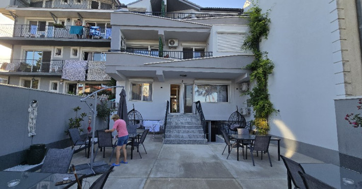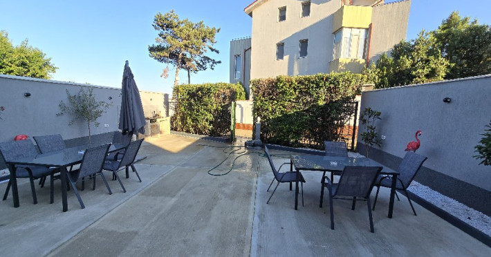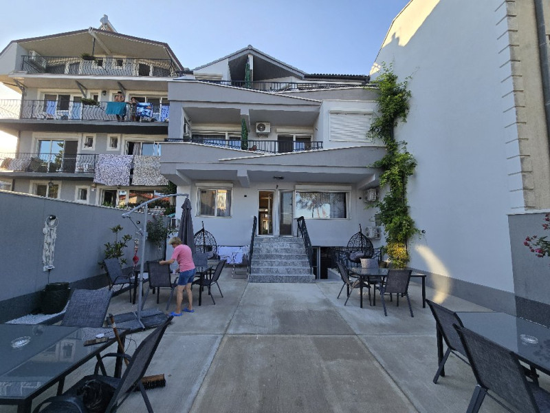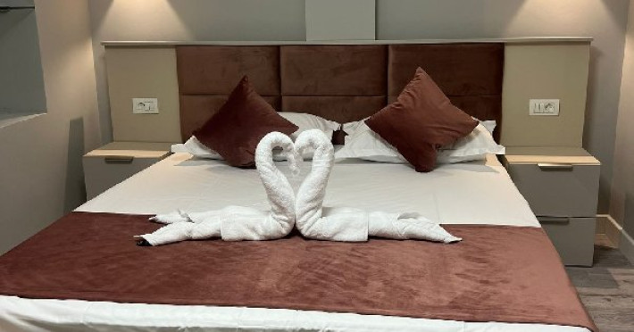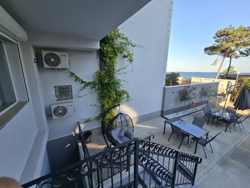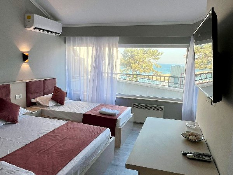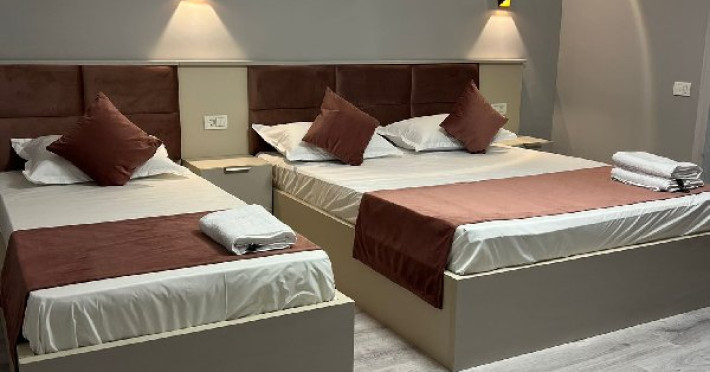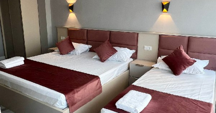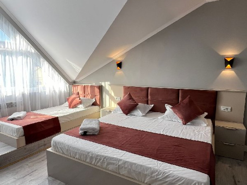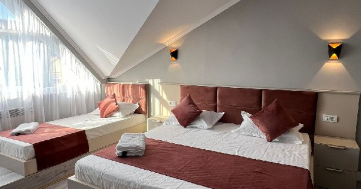 DESCRIERE CAMERE Numar total camere: 8 Camera Dubla Parter/ Demisol: 1 (pat matrimonial) Camera Dubla cu Terasa- Vedere Frontala spre Mare: 2 (pat matrimonial) Camera Tripla cu Balcon: 1 (pat matrimonial + pat single) Camera Tripla cu Terasa- Vedere Frontala spre Mare: 1 (pat matrimonial + pat single) Apartament cu 2 dormitoare- Parter: 1 (2 paturi matrimoniale, 1 baie) Apartament cu 2 dormitoare- Parter/ Demisol: 1 (2 paturi matrimoniale, 1 baie) Apartament cu 2 dormitoare, Terasa- Vedere Frontala spre Mare: 1 ( 2 paturi matrimoniale + 2 paturi single, 1 baie)
