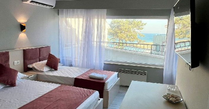 Dotari camere: TV Led, minifrigider, aer conditionat, uscator de par si terasa proprie cu scaune si masa. Unele camere au balcon.
