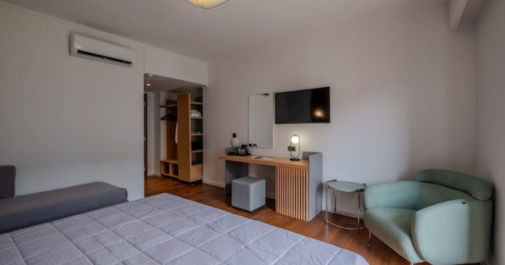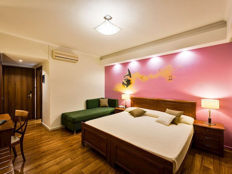 Fiecare camera are picturi murale originale diferite, pictate una cate una, de pictori talentati (dl. De Martino, domnisoara Georgia si Danae). O camera superioara spatioasa (aproape 35 mp), elegant decorata, disponibila in varianta queen size sau cu paturi twin, zona de relaxare cu canapea, balcon mobilat, vedere la mare sau la gradina. Consta din doua camere separate cu paturi twin sau un dormitor si o mica zona de relaxare cu canapea (pentru cazarea unei a treia persoane), elegant decorata, cu balcon mobilat, vedere la mare sau la gradina.