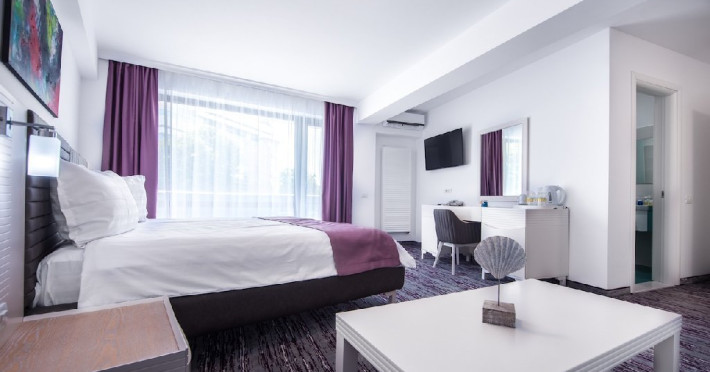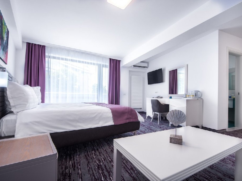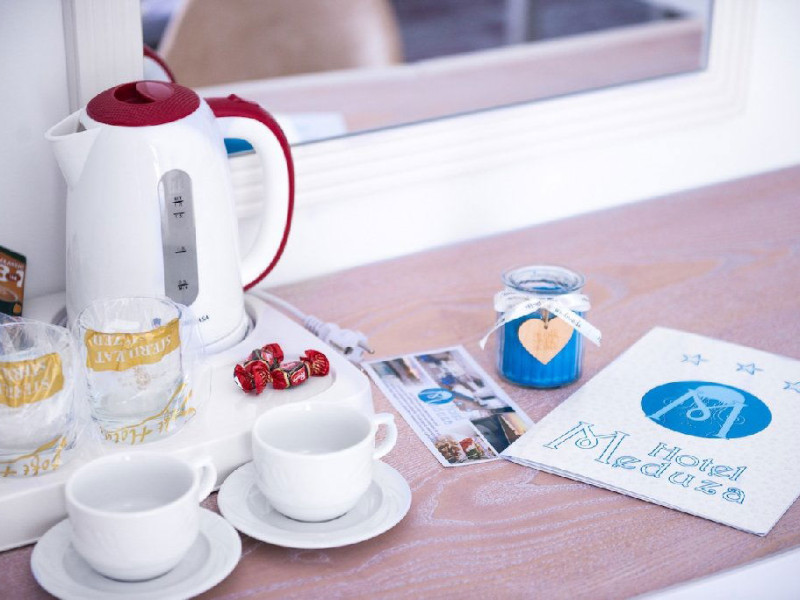 HOTEL MEDUZA ESTIVAL se afla in statiunea Olimp. Dotari si servicii - parcare proprie (in limita locurilor disponibile); - gratuita in limita locurilor disponibile; - internet -wi-fi in tot hotelul; - pastrare obiecte de valoare; - terasa;- salon de mic dejun. Va informam ca incepand cu sezonul 2021 se va incasa la check-in taxa de statiune, in valoare de 5 lei/persoana/zi, conform HCL 283/23.12.2020. Vor fi taxate toate persoanele cu varsta de 18 ani impliniti. Acesta taxa NU este inclusa in tarife afisate si se achita de catre turisti direct lareceptia hoteluluiin prima zi de cazare. Servicii masa Restaurant propriu: mic dejun Dotari camere Dimensiunea totala a camerei 42 m2, camera are 30 m2 + 1 balcon de 12 m2. Camerele sunt dotate cu pat matrimonial 1.80/2.00 m. Toate camerele hotelului sunt prevazute cu dulap, TV cu ecran plat si baie privata. Fiecare camera de la Hotel Meduza Estival include zona de relaxare. Facilitati copii In camera cu 2 adulti: - 0 - 5.99 ani - gratuitate la cazare si mic dejun; - 6 - 11.99 ani - achita contravaloarea patului suplimentar cu mic dejun inclus; - peste 12 ani achita contravaloarea patului suplimentar cu mic dejun inclus.