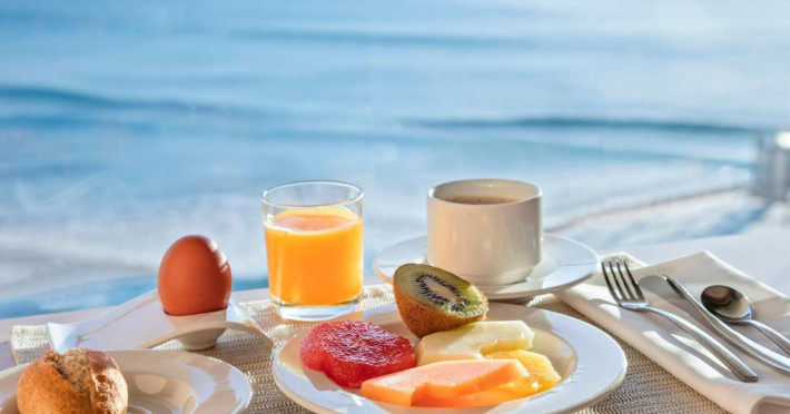 Restaurantul Trasluz al hotelului este specializat in preparate din orez si peste proaspăt. De asemenea, există un snack bar langă piscină și un lounge bar elegant.
