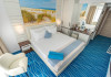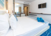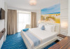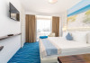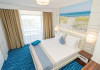 Apartament cu 2 dormitoare comunicante vedere la mare este compus din doua dormitoare comunicante, ambele cu baie proprie si pat matrimonial (180/190 cm),