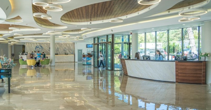 - SPA (Piscina interioara cu cascada cervicala si inot impotriva curentului, Sauna filandeza, Salina, Biosauna, Baie de vapori, Dusuri emotionale, Bazine kneipp, Cabinet masaj single si in cuplu , Cabinet cosmetic; Fantana de gheata);