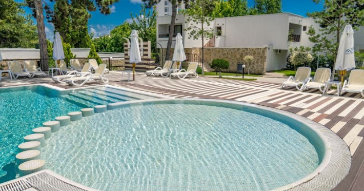 Piscina principala exterioara este una dintre cele mai frumoase din zona, avand o suprafata de 1000 mp si un design modern.