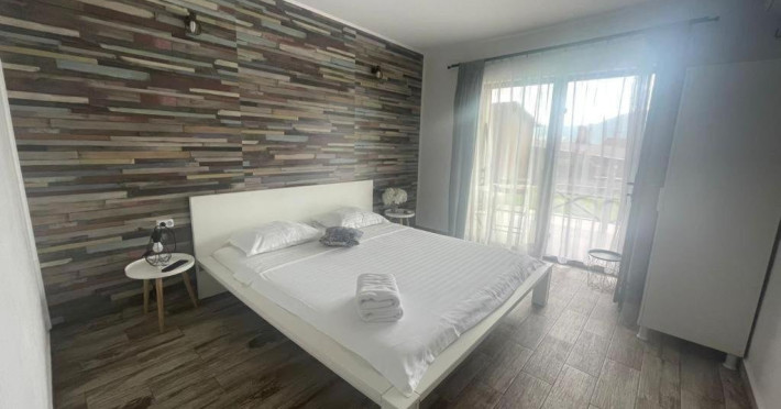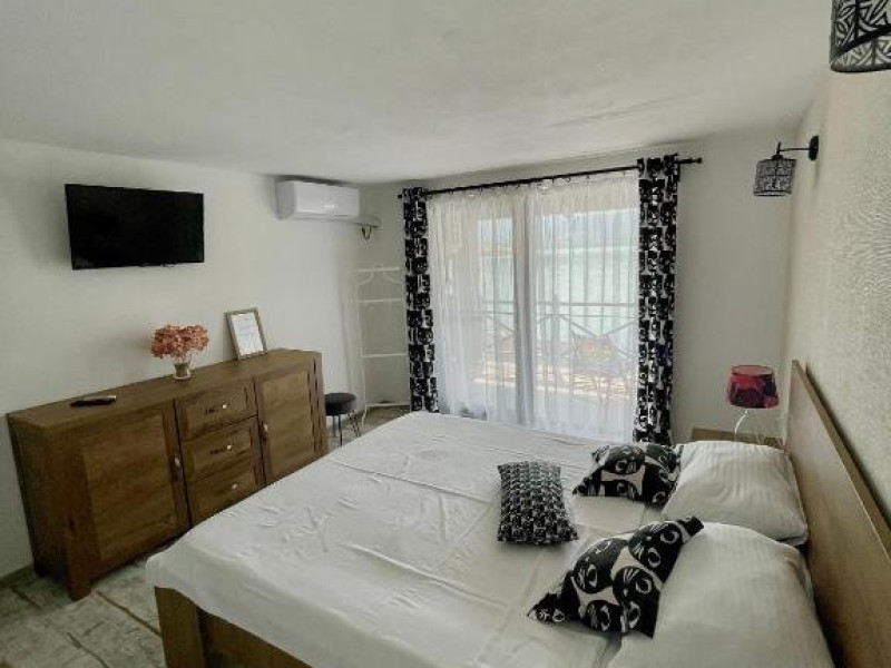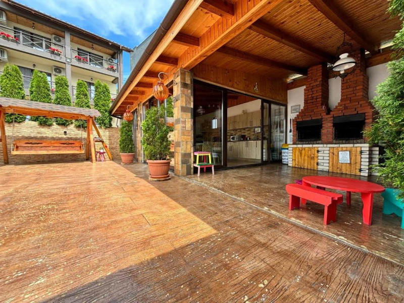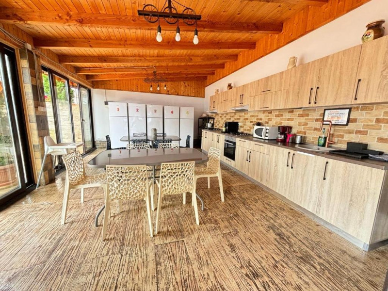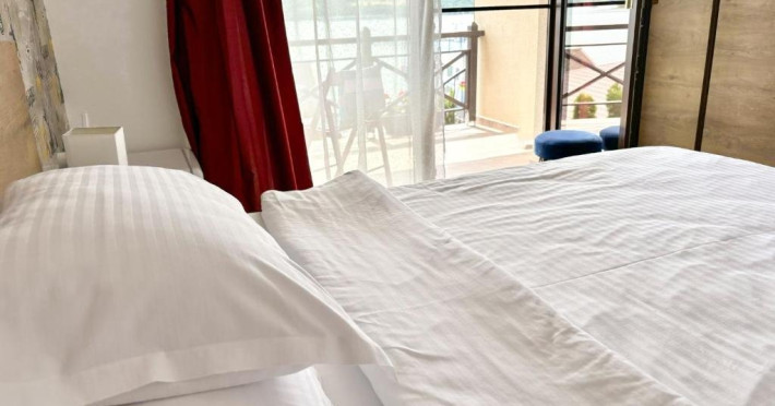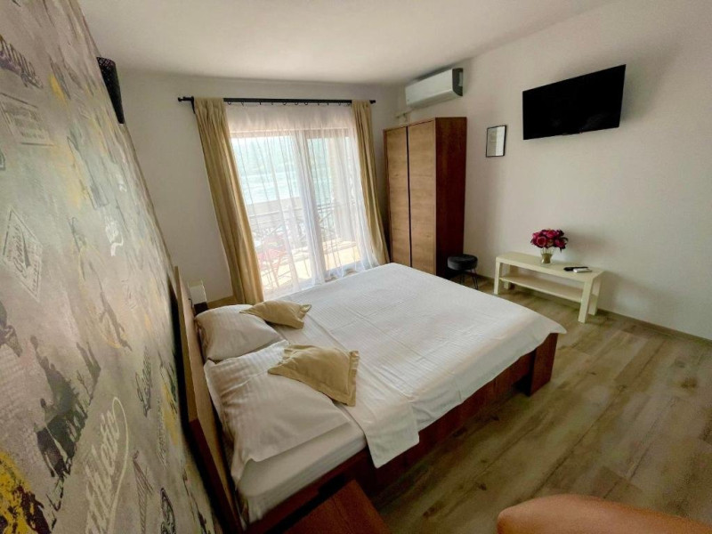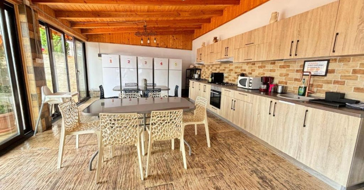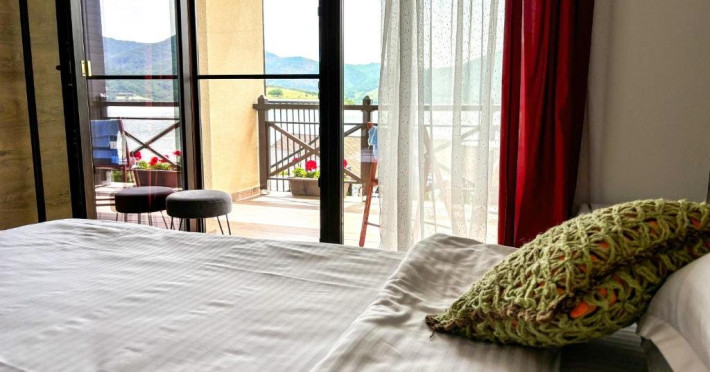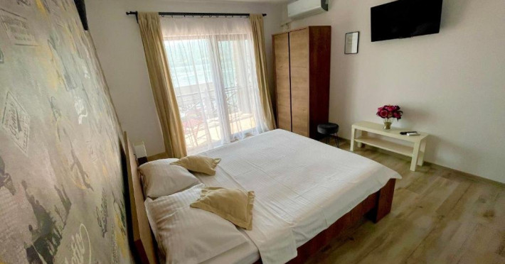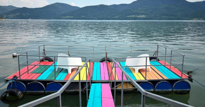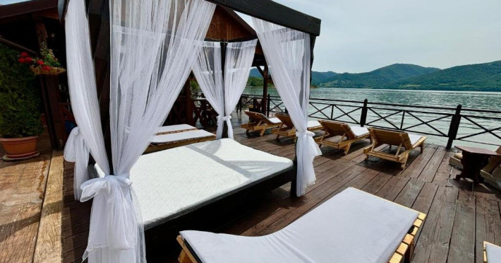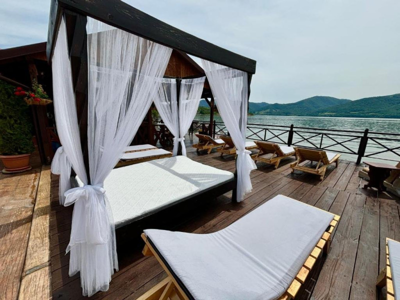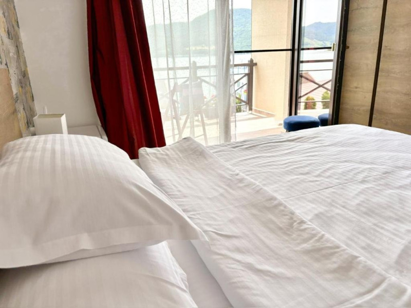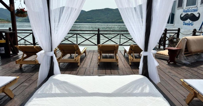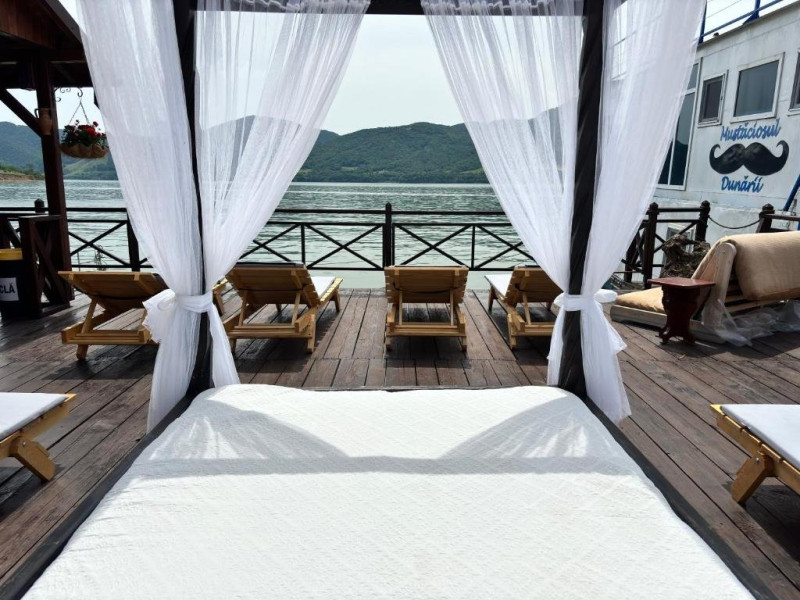 INFORMATII GENERALE Mustaciosul Dunarii se afla pe DN 57 in localitatea Eselnita, zona Cazanele Dunarii. Este locatia ideala daca vrei sa pleci cu familia sau grupul de prieteni departe de agitatia orasului. DESCRIERE UNITATE DE CAZARE In aceasta locatie puteti descoperi un colt de liniste si confort pe malul Dunarii, ideal pentru familii sau cupluri care isi doresc o experienta relaxanta intr-un cadru natural deosebit. FACILITATI UNITATE Spatiile comune includ o bucatarie complet utilata, gratar si zona pentru ceaun, terasa exterioara acoperita cu locuri de relaxare, sezlonguri si piscina exterioara. Locatia dispune si de parcare. DESCRIERE CAMERE Camerele dispun de balcon cu vedere spre Dunare, aer conditionat, TV, mini frigider, baie proprie. LOCALIZARE Mustaciosul Dunarii se afla pe DN 57 in localitatea Eselnita, zona Cazanele Dunarii. ATRACTII TURISTICE Pestera Gaura Chindiei II, Pestera Veterani, Pestera Haiducilor, Cetatea Trikule, Cetatea Ladislau, Cazanele Mari si Cazanele Mici, Chipul lui Decebal, Manastiri cum ar fi Vodita, Sfanta Ana, Mraconia. POLITICI Nu se accepta accesul cu animale de companie. Este interzis accesul cu boxe. SERVICII DE MASA Nu se asigura masa, insa turistii au acces la bucataria comuna si la gratar. FACILITATI COPII In camera dubla se poate adauga maxim un pat suplimentar.