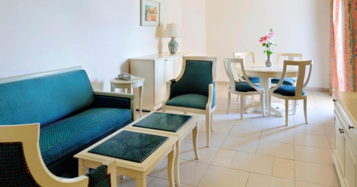 Oferind 520 de unități de cazare, complexul este impărțit in partea dinspre plajă si partea dinspre grădina Munte, cu vedere spectaculoasă la mare, la piscină și la grădini. Toate camerele sunt spațioase și au aer condiționat și baie privată cu cadă. Fiecare unitate de cazare include un minibar si o cutie de valori, iar camerele de pe partea cu plaja au si TV cu ecran plat.