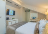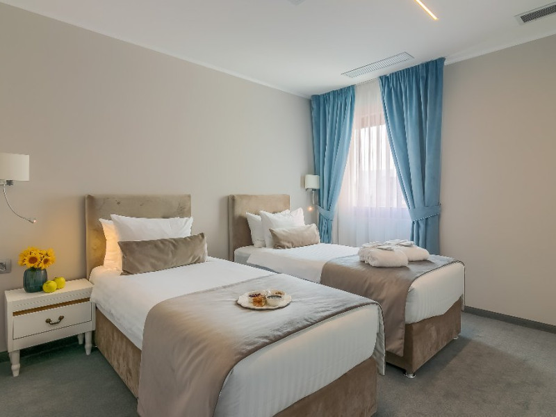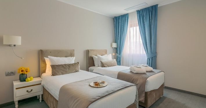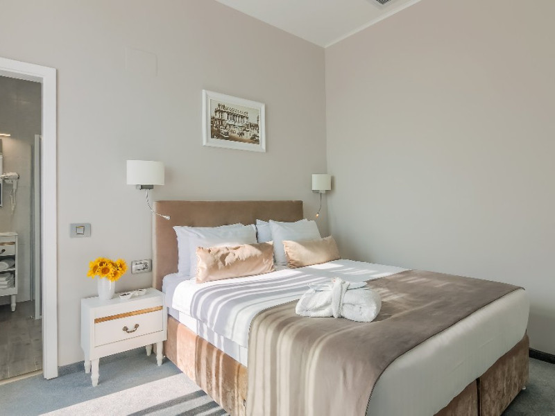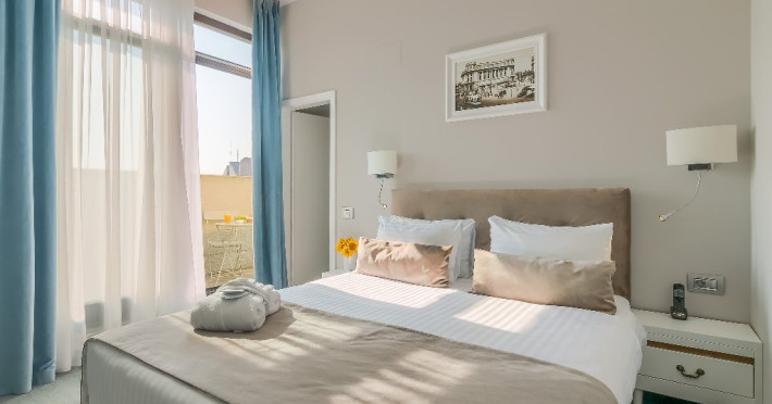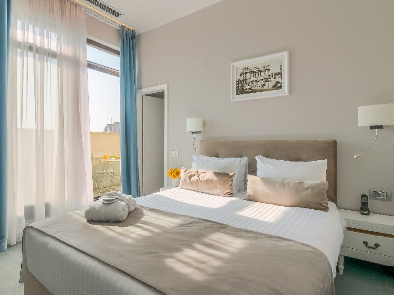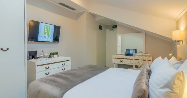 DESCRIERE CAMERE CAMERE DUBLE DELUXE MANSARDA CU PAT MATRIMONIAL: Deosebit de confortabile, aceste camere sunt o alternativa economica, fara a fi nevoit sa renunti la dotarile de top si atmosfera rafinata. Patul de tip queen si facilitati gratuite incluzand Wi-Fi de mare viteza si apa plata, un dus modern de tip walk-in si articole de ingrijire, ofera o experienta de relaxare la superlativ. Camerele au espressor de cafea Nespresso si Smart TV. Sarmul aparte este dat de fereastra Velux din tavan, oferind suficienta lumina naturala pentru a te simti in largul tau si a avea o sedere placuta. CAMERE DUBLE DELUXE CU PAT MATRIMONIAL: Camera standard este ideala pentru cei care calatoresc in interes de afaceri sau pentru relaxare. Beneficiati de toate facilitatile de care aveti nevoie pentru a lucra sau pentru a va relaxa in centrul Bucurestiului. Acest tip de camera este ideal pentru sederi pe termen scurt si mediu in Bucuresti. Minibar, seif, smart TV, aer conditionat, aparat de cafea Nespresso. CAMERE DUBLE DELUXE TWIN CAMERE DUBLE DELUXE CU PAT MATRIMONIAL CU BALCON: Doriti sa lucrati sau sa va relaxati si sa va bucurati totodata de peisajul eclectic al centrului vechi al orasului? Aceasta este camera ideala pentru sederea dvs in Bucuresti. La dispozitie intotdeauna minibar, seif, smart TV si aer conditionat. Patul extra confortabil queen-size este perfect pentru turistul epuizat si exploratorul urban in timp ce biroul de lucru intins este tot ceea ce necesita orice calator in interes de afaceri pentru a-si desfasura activitatea eficient. Indiferent cum alegeti sa va petreceti timpul in New Era Hotel, cafeaua si ceaiul sunt din partea casei! CAMERE DUBLE SUPERIOR DELUXE CU PAT MATRIMONIAL: Datorita suprafetei generoase, facilitatilor moderne multimedia, biroului de lucru extins si mesei sic pentru doua persoane, va puteti relaxa, puteti lucra si puteti organiza chiar mici intruniri.