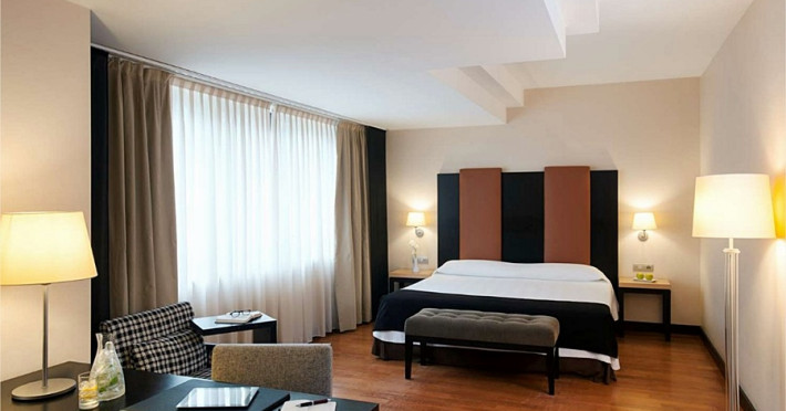 The NH Timisoara hotel enjoys a great location in a peaceful area opposite the Peoples Park. The beautiful Bega river is right across the street, while the city center is only a 15-minute walk away The hotel has 83 guestrooms, which are spacious, light and stylishly decorated in warm, natural colors. Rooms are equipped with desks and chairs for working, while Wi-Fi, satellite TV and air con all come as standard. And if youre looking for extra space, we have 3 Junior Suites with separate sitting areas and great views. We have a bright, spacious and modern bar-restaurant that serves both local and international dishes. After that, you can head to the gym to work off your meal. Or if youd rather relax, youre welcome to use our spa. Its home to a Turkish bath, a sauna and a Jacuzzi.