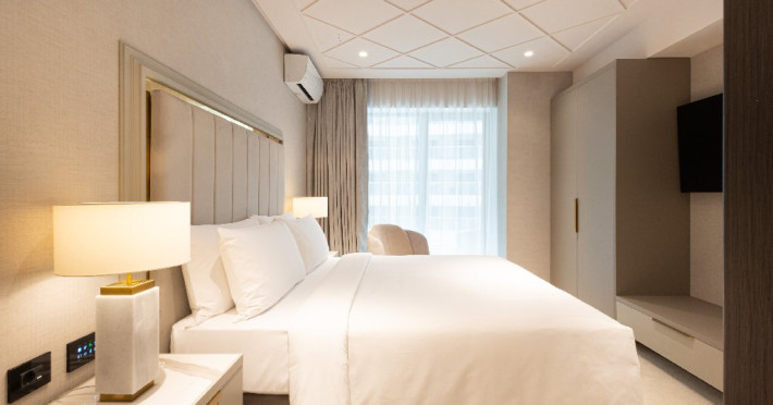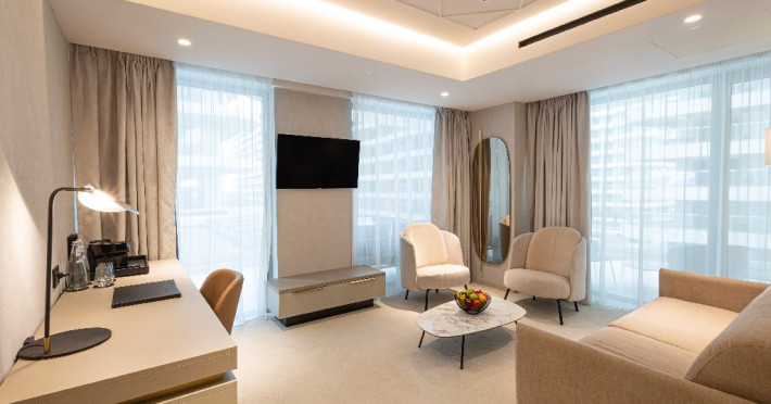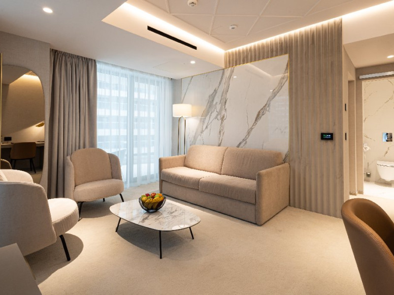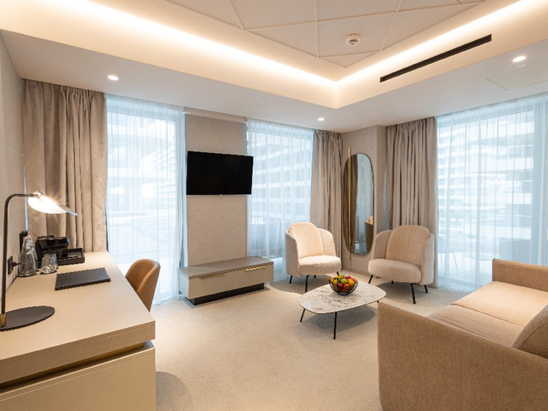 24h Room Service, curatenie zilnica, incluzand schimbarea lenjeriei, fier masa de calcat la cerere, ferestre de la podea la tavan terasa mobilata, mini-bar, apa imbuteliata gratuita, welcome gift, cafetiera si set pentru ceai, seif.