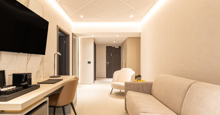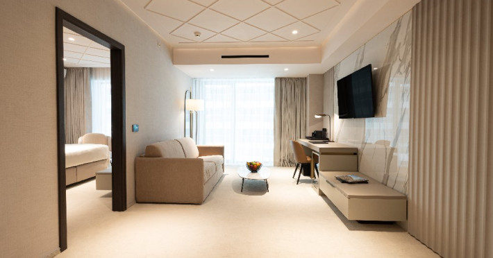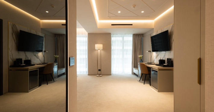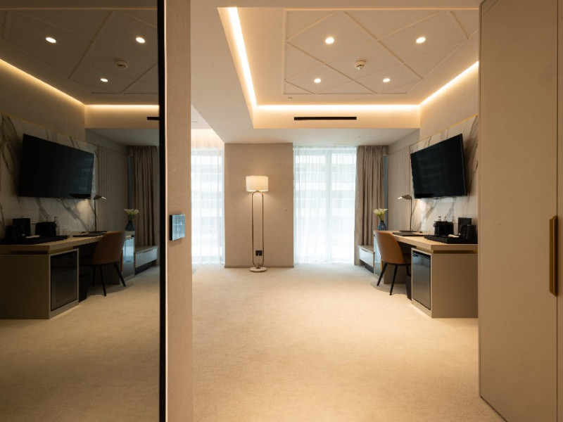 Halate groase din velur si papuci, uscator de par, produse cosmetice de lux, dus modern, patut de bebelusi la cerere/Baby cot, canapea extensibila in camerele selectate, paturi suplimentare (tip pliant sau fix) la cerere in camerele selectate, 140cm Smart TV, sistemul integrat SensooSmart Hotel Room, inclusiv presetarile pentru lumina, sistem de aer conditionat individual, WI-FI, seif, mobile key, statii de incarcare si control langa pat, telefon.