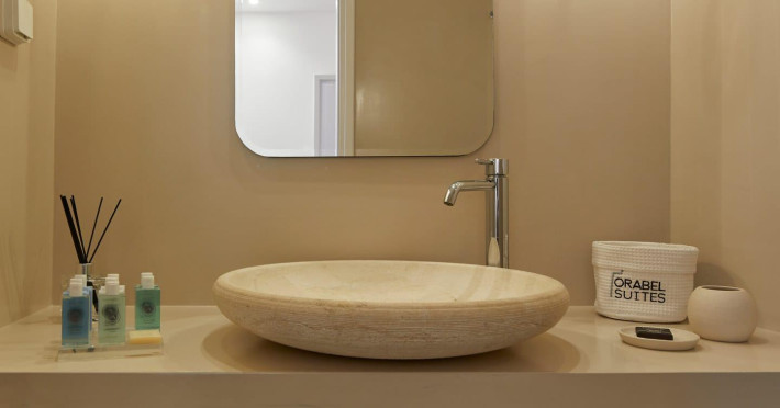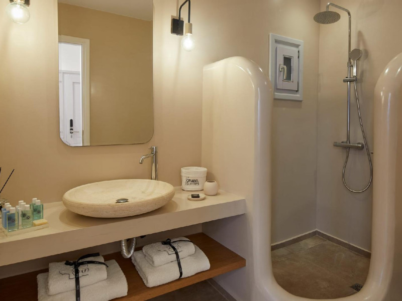 A BRAND NEW BOUTIQUE HOTEL IN PERIVOLOS ORABEL SUITES SANTORINI Enjoying a spectacular location overlooking the well-known beach of Perivolos, Orabel Suites Santorini is a bespoke boutique property offering luxurious suites in an exclusive atmosphere. Just a few steps from a broad sandy beach, this spectacular property is idyllic for relaxing holidays and honeymoons.