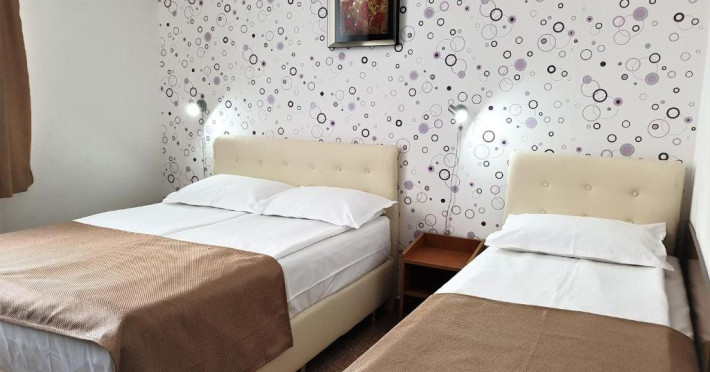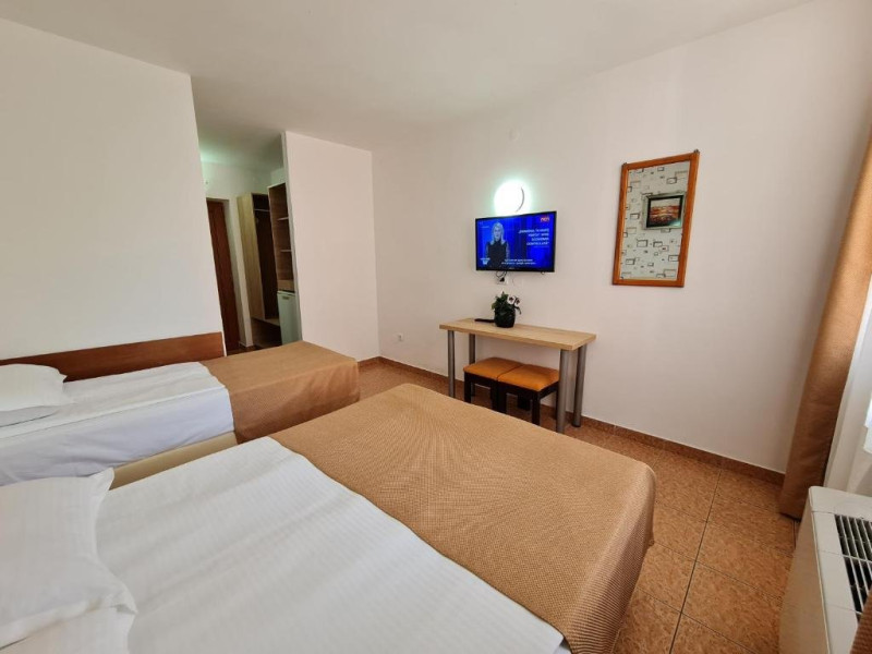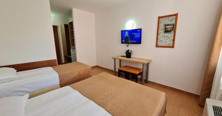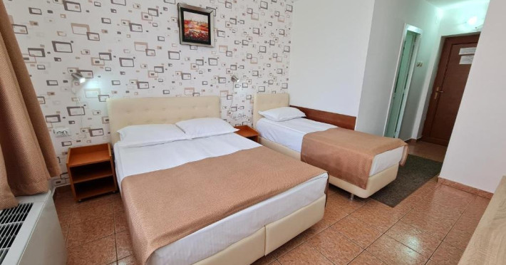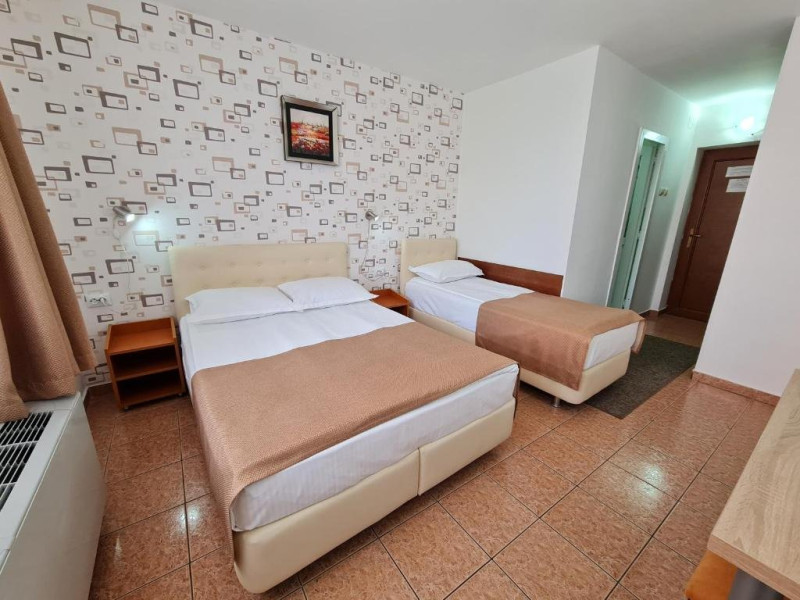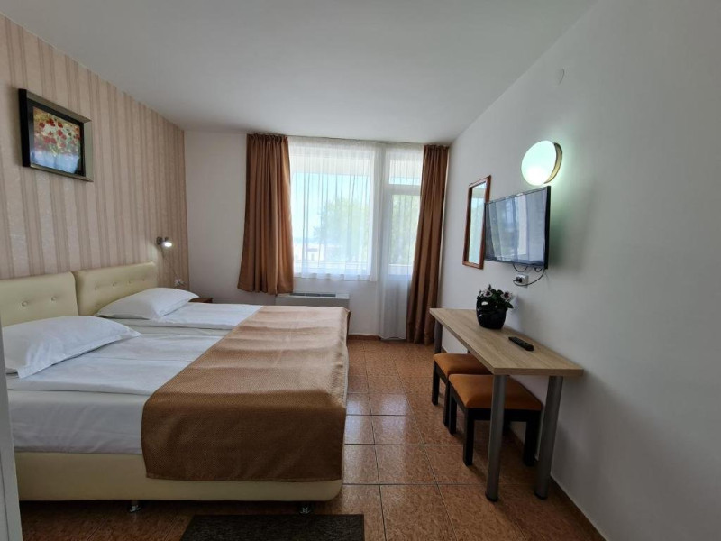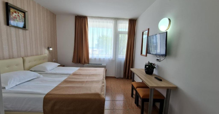 Hotelul are lift, toate camerele au balcoane (inclusiv parterul) si sunt dotate cu TV color, cablu, wi-fi gratuit, aer conditionat, uscator de par si frigider. Camerele mici standard 2 persoane sunt dotate cu 1 pat matrimonial (latime 1.40m). Camerele duble sunt dotate cu 1 pat dublu(latime 1.6m) sau 2 paturi de 1 pers(latime 0.9m) Camerele duble cu pat suplimentar (triple) sunt dotate cu 1 pat matrimonial (latime 1.40m) si 1 pat de o persoana (nu este pat pliant - latime 0.8 m). Toate tipurile de camere au acelasi tarif si aceeasi dotare, nu exista nicio diferenta intre camerele de la parter si cele de la etaj. Camerele cu vedere la mare se repartizeaza de la receptie in functie de disponibilitatile din ziua respectiva (nu se rezerva).