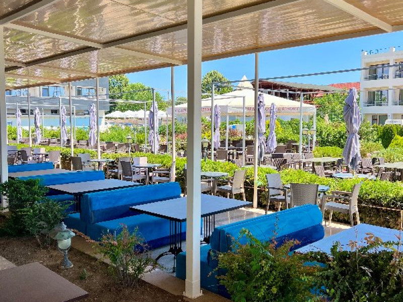 FACILITATI UNITATE Resortul dispune de: receptie, trei baruri, restaurant, terasa, doua piscine exterioare, patru sali de conferinte cu o capacitate totala de 200 de locuri, teren de tenis cu dimensiune olimpica, doua terenuri de tenis de antrenament-la perete, teren de baschet si o imensa curte proprie, plaja privata, parcare proprie gratuita, in limita locurilor disponibile.