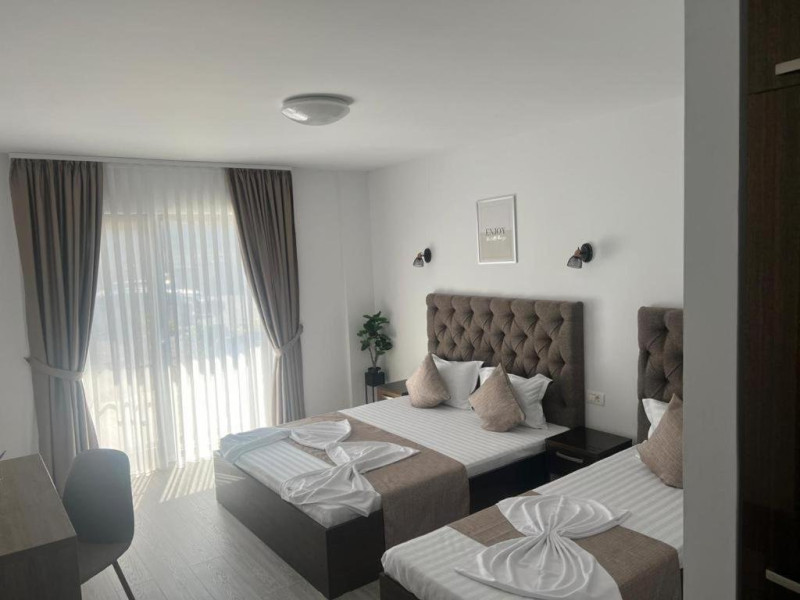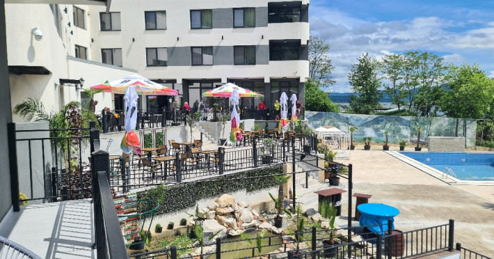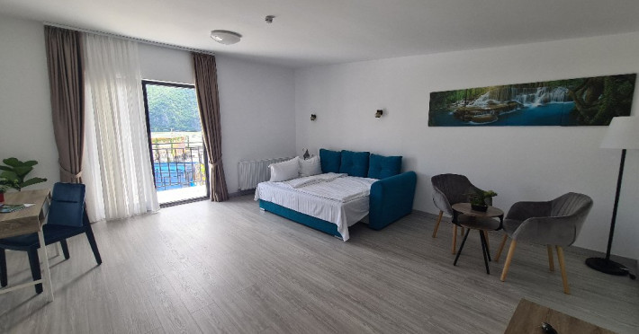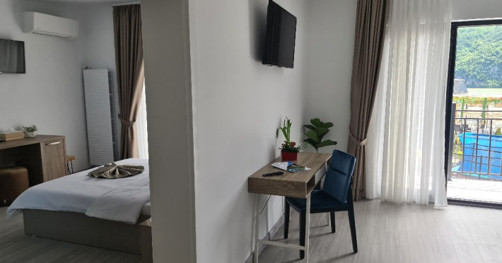 INFORMATII GENERALE O locatie noua si linistita, Partizan Resort este pozitionat in punctul cel mai inalt din propietate si are o priveliste fantastica catre Dunare, Tabula Traiana si Cazanele Mici. DESCRIERE UNITATE DE CAZARE Partizan Resort se afla in Eselnita, la 31 km de Portile de Fier 1, si pune la dispozitie o piscina in aer liber sezoniera, o gradina, o terasa si parcare privata gratuita. Construita in 2023, proprietatea se afla la aproximativ 3,3 km de Chipul lui Decebal. FACILITATI UNITATE Oaspetii pot folosi terasa la soare sau piscina in aer liber, piscina exterioara pentru adulti (h 1.40) si piscina pentru copii (h 0.65) cu un spatiu generos pentru sezlon si baldachin si un pool bar si se pot bucura de vederea la Dunare in timp ce copiii se pot bucura de locul de joaca. Propietatea este dotata cu parcare interioara. Propietatea detine un restaurant si doua terase unde puteti servi masa cu preparate delicioase La Partizan Resort puteti juca tenis de masa, iar zona este populara pentru pescuit. Personalul de la receptia deschisa non-stop, vorbitor de engleza britanica, italiana si romana, este mereu la dispozitia oaspetilor. In plus, au la dispozitie WiFi gratuit in intreaga proprietate. DESCRIERE CAMERE Dispune de 26 de spatii de cazare dintre care: - 17 camere duble/single, - 3 triple, - 6 apartamente compuse din living cu canapea extensibila si dormitor.