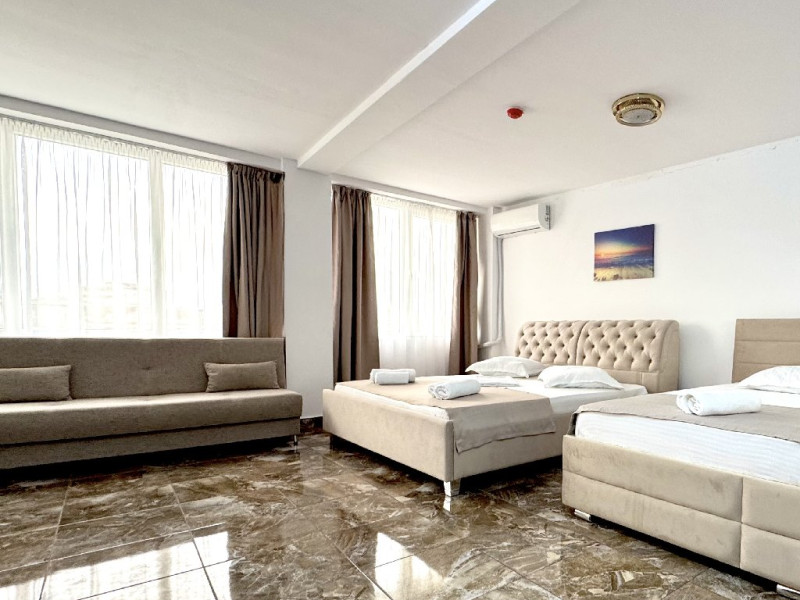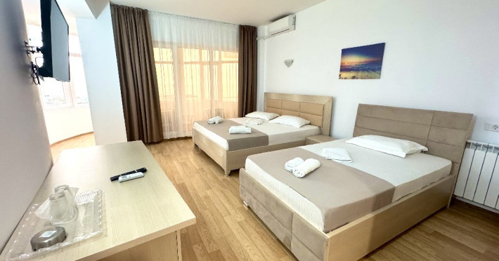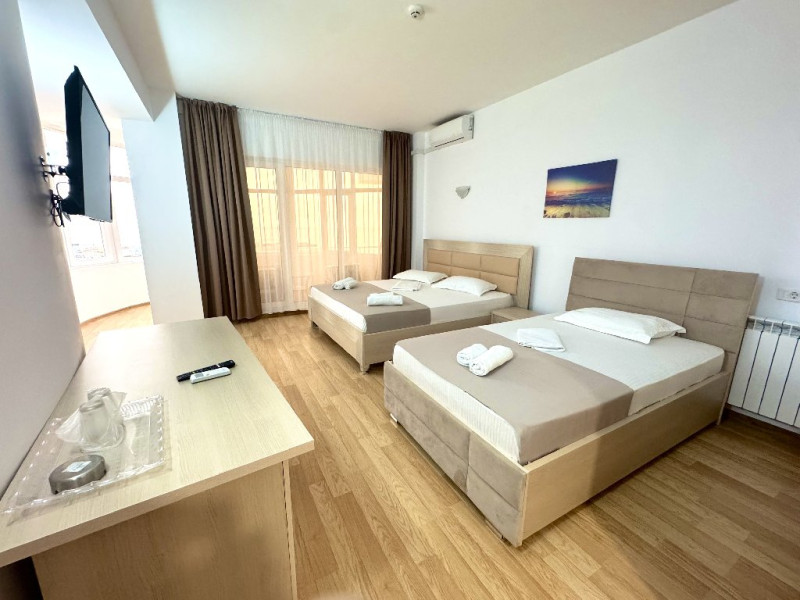 INFORMATII GENERALE Camere de inchiriat- Pasha a fost construit in 2021 si abia asteapta sa-si intampine oaspetii cu un aer nou, modern si cu tot confortul necesar. Fie ca sositi cu familia, prietenii, in cuplu sau singuri, Pasha este alegerea potrivita. FACILITATI UNITATE Dotari generale: restaurant, bar, terasa, loc de joaca pentru copii, parcare in limita disponibilitatilor, camera de bagaje, seif la receptie. Se oferra gratuit 2 sezlonguri cu umbrela / camera / zi, pe plaja hotelului (Plaja Debarcader) in perioada 29.05-31.08.2026.* sezlongurile alocate locatiei noastre sunt pozitionate in dreapta Digului Debarcader, in ultimele randuri spre faleza.