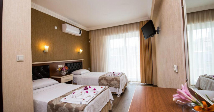 Camerele hotelului sunt dotate cu: aer conditionat, televizor, frigider, uscator de par, telefon, wi-fi, balcon.