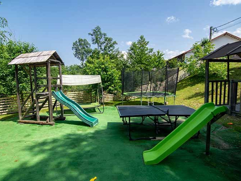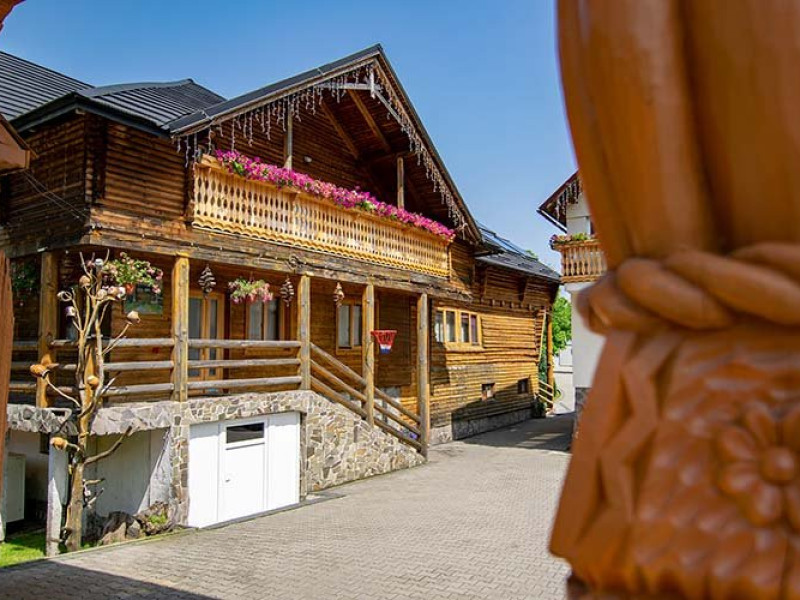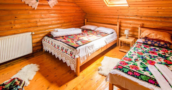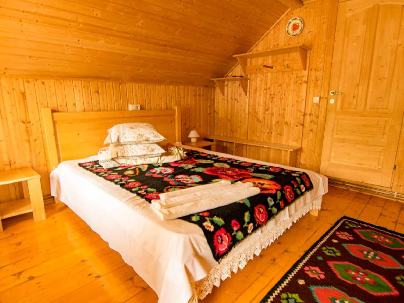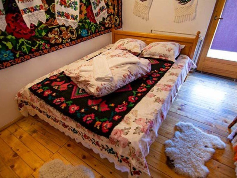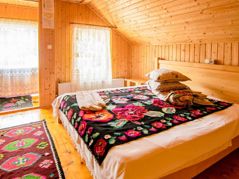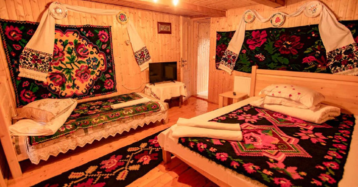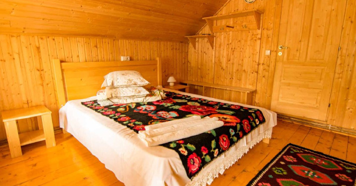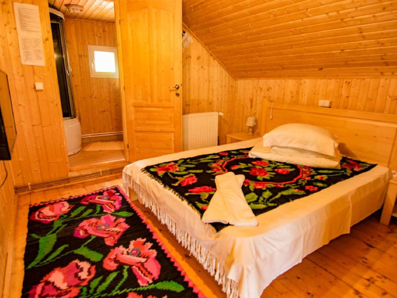 INFORMATII GENERALE Pensiunea Anca se afla in localitatea Desesti, judetul Maramures. Oaspetii care poposesc la Pensiunea Anca admira cu interes si uimire atingand sfiosi si cu respect podoabele vestimentare si uneltele folosite odinioara in gospodariile taranesti DESCRIERE UNITATE DE CAZARE Pensiunea Anca din Desesti, sat cu traditii, port si mesteri populari, brazdat de raurile Mara si Rausor, loc devenit un adevarat simbol al Maramuresului Istoric situat in apropierea Muntilor Gutai, oferind turistilor pe langa aerul ozonat o panorama deosebita. Dupa urcarea scarilor din lemn masiv, odata intrat in livingul impunator ai impresia ca ai pasit intr-o alta lume, lumea satului autentic maramuresean. FACILITATI UNITATE In aceasta locatie veti gasi o varietate de facilitati: piscina interioara pentru relaxare, sauna, ciubar cu apa sarata pentru rasfat si salina. Va puteti relaxa pe terasa sau in foisoarele pitoresti. Aveti la dispozitie cuptorul/gratarul pentru preparate delicioase iar din pastravaria proprie prospetimea pestelui. Copiii se pot bucura de locul de joaca special amenajat, iar masina va fi in siguranta in parcarea privata. DESCRIERE CAMERE Pensiunea Anca ofera camere spatioase, cu 2 sau 3 paturi. Toate spatiile de cazare au bai proprii, televiziune prin cablu si internet Wi-fi, fiind amenajate si decorate cu elemente traditionale maramuresene. LOCALIZARE Pensiunea Anca se afla in localitatea Desesti, judetul Maramures. ATRACTII TURISTICE Biserica de lemn Sf Paraschiva, Complexul Muzeal Turistic, Cheile Tatarului. POLITICI Animalele de companie de talie mica sunt permise contra cost. SERVICII DE MASA Mesele se asigura in locatia proprie. FACILITATI COPII Copiii mai mici de 6 ani se pot caza in camera dubla.