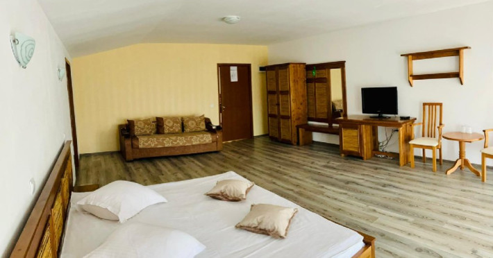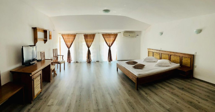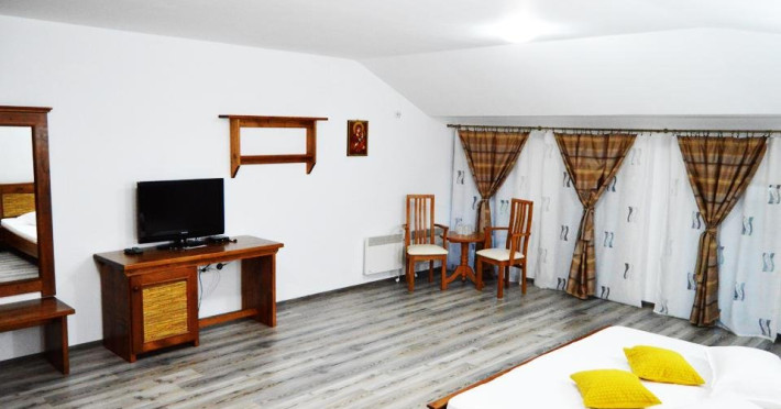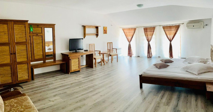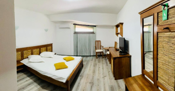 INFORMATII GENERALE Pensiunea Beluga este situata intr-o zona care te lasa fara grai, pe marginea lacului Murighiol din Delta Dunarii fiind o adevarata oaza de liniste si relaxare. DESCRIERE UNITATE DE CAZARE Pensiunea Beluga este situata in comuna Murighiol, pe marginea lacului cu acelasi nume, fiind o adevarata oaza de liniste si relaxare. FACILITATI UNITATE Ofera cazare in camere de 4 margarete, confortabile, spatioase si luminoase. Dispune de restaurant propriu, parcare si piscina. Se asigura acces la internet wi-fi. DESCRIERE CAMERE Camera single: pat matrimonial, baie, tv, aer conditionat, frigider, wireless Camera dubla: pat matrimonial, baie, tv, aer conditionat, frigider, wireless Camera dubla economy situata la mansarda: pat matrimonial, frigider in camera, tv, aer conditionat, wireless Camera tripla: pat matrimonial si pat de o persoana, baie, tv, aer conditionat, frigider, wireless Camera Family: pat matrimonial si canapea extensibila frigider in camera, baie, tv, aer conditionat, wireless, Apartament: dormitor cu pat matrimonial, living cu canapea extensibila, frigider, baie, tv, aer conditionat, wireless, terasa. LOCALIZARE Pensiunea Beluga este situata intr-o zona care te lasa fara grai, pe marginea lacului Murighiol din Delta Dunarii fiind o adevarata oaza de liniste si relaxare. ATRACTII TURISTICE Cetatea Argamum (Orgame) aflata la Jurilovca; Cetatea Halmyris in comuna Murighiol,Cetatea Histria pe malul lacului Sinoe, Cetatea romano-bizantina Dinogetia incomuna Jijila; Geamia Ali-Gaza-Pasa situata in orasul Babadag; Cetatea romana Noviodunum langa orasul Isaccea; Cetatea romana Arrubium in orasul Macin; Cetatea romana Beroe in comuna Ostrov, Cetatea romana de la Enisala, Manastirea Cocosu, Manastirea Celic-Dere, Manastirea Saon, Muzeul Farul Vechi (genovez) Sulina; excursii pe bratele Dunarii, pescuit sportiv. POLITICI Nu sunt permise animalele de companie. SERVICII DE MASA Mic dejun si cina tip bufet iar in cazul in care numarul de turisti este sub 50% din capacitatea de cazare, mesele se servesc la farfurie, aperitiv, fel principal si desert. FACILITATI COPII Se poate adauga maxim un pat suplimentar in camera dubla sau dubla economy. FACILITATI EVENIMENTE Locatia nu dispune de salon pentru evenimente.
