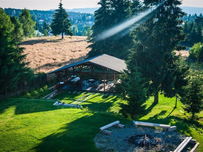 DESCRIERE UNITATE DE CAZARE: 10 camere cu pat matrimonial si 2 camere twin, una dintre camere dispune de o canapea extensibila generoasa unde pot dormi doi adulti. La cerere, in unele camere se pot pune paturi pliante suplimentare sau saltele gonflabile. In functie de tipul acestora, ele dispun fie de vana,fie de dus sau beneficiaza de balcon. Spatiile sunt caracterizate de o mare atentie acordata detaliilor: mobilier din lemn imbinat cu elemente de design, culori calde care faciliteaza relaxarea si paturi menite sa va ofere un plus de odihna si confort. SERVCII DE MASA: Restaurantul va pune la dispozitie o gama variata de preparate specifice bucatariei ardelenesti, caracterizate de traditionalism cat si de importuri culinare: tarhon, palinca, visinata, papanasi, boia, sarmalute a la Cluj, mamaliga, gulas si multe alte savori. Atmosfera imbietoare, servirea impecabila si nu in ultimul rand, meniul bogat in mancaruri traditionale preparate dupa retete traditionale din ingrediente 100% naturale sunt doar o parte din atuurile care ne recomanda. Folosim ingrediente locale, atent selectionate de la producatorii locali.Mancarurile noastre sunt proaspat gatite zilnic, fara sa folosim semipreparate. Odata ce v-ati asezat la masa, puteti comanda bucate alese, mancaruri traditionale romanesti gatite ca la mama acasa. Oaspetii nostri se vor putea de asemenea bucura de privelistea si aerul curat de munte servind masa si pe terasa spatioasa a pensiunii sau in foisorul de lemn.