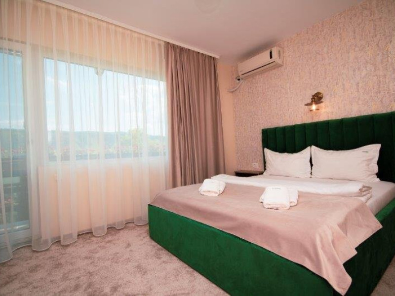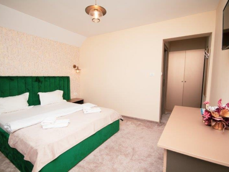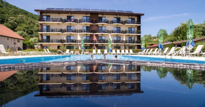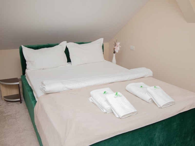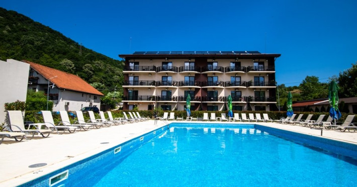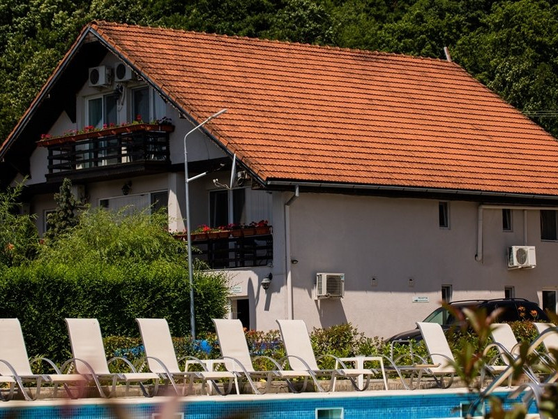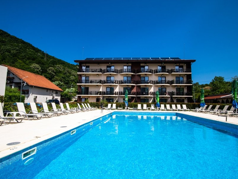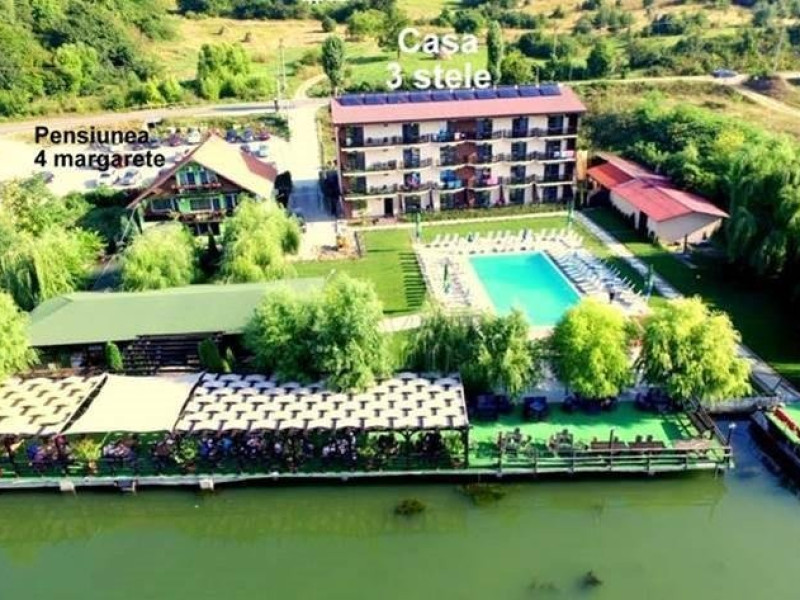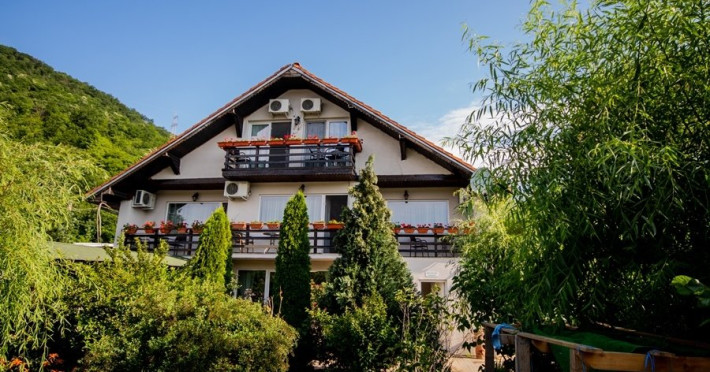 INFORMATII GENERALE Pensiunea Danubia este situata pe Clisura Dunarii, in localitatea Eselnita. Aceasta practic marcheaza inceputul defileului Dunarii ce se intinde pana aproape de Moldova Noua. DESCRIERE UNITATE DE CAZARE Pensiunea Danubia clasificata la patru margarete va intampina pe malul Dunarii, intr-un cadru natural dominat de frumusetea muntelui si a apei. Aici ospitalitatea este cuvantul ce caracterizeaza personalul, iar eleganta si confortul pe care il veti regasi in camere va vor transforma sejurul intr-o amintire de neuitat. FACILITATI UNITATE Restaurant, sala de evenimente de 200 locuri, terasa ponton, piscina exterioara, sezlonguri, ponton pentru excursii pe Dunare, internet, parcare. DESCRIERE CAMERE CAMERELE NU AU VEDERE LA DUNARE. Pensiunea Danubia clasificata la patru margarete are o capacitate totala de 17 locuri, distribuite in 5 camere duble (3 cu pat matrimonial si 2 de tip twin) si un apartament, caracterizate de un stil aparte, unic si frumos. Dotari camere: tv lcd, unele camere au balcon, acces gratuit Wi - Fi, baie cu cabina de dus, aer conditionat, uscator de par. LOCALIZARE Pensiunea Danubia se afla in Eselnita, pe malul Dunarii. ATRACTII TURISTICE Cazanele Mari si Cazanele Mici; Chipul lui Decebal; Tabula Traiana; Pestera Ponicova; Grota Veterani; Manastirea Mraconia; Manastirea Sfanta Ana; Manastirea Vodita. POLITICI Nu se accepta accesul cu animale de companie. SERVICII DE MASA Masa este sub forma de bufet sau fisa cont in functie de numarul de turisti cazati. Va oferim diversitate de la aperitiv (salata de icre), 2-3 feluri de ciorbe (nu lipseste ciorbita de peste) saramura de peste, 2-3 feluri mancare gatita, pui, peste, porc in diferite variante (prajit, gratar, cuptor) desert si apa plata. Bauturile alcoolice si racoritoare nu sunt incluse, se comanda separat la bar. FACILITATI COPII Copiii se pot caza in apartament. FACILITATI EVENIMENTE Sala de evenimente de 200 locuri.