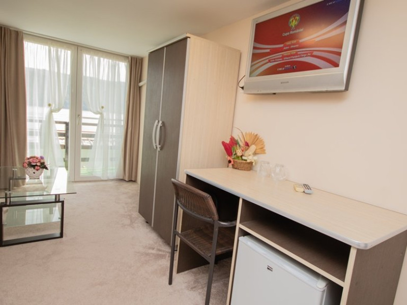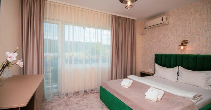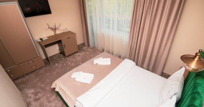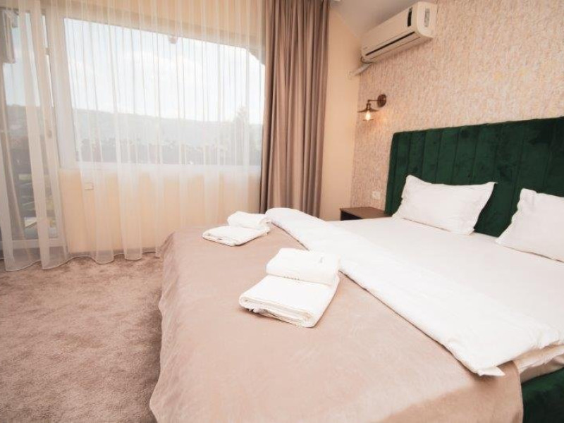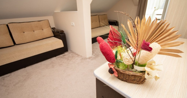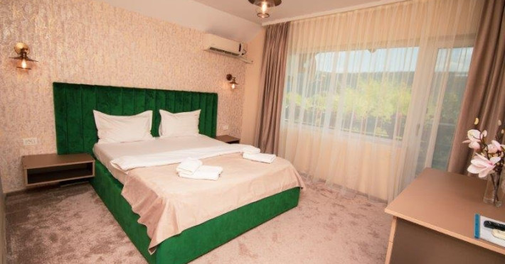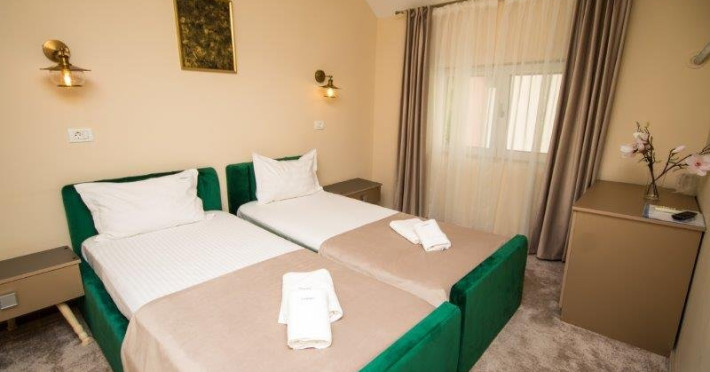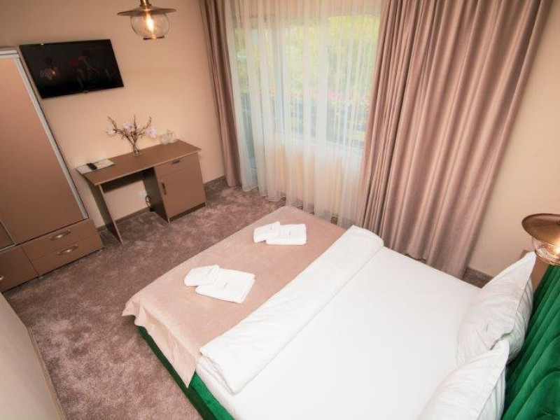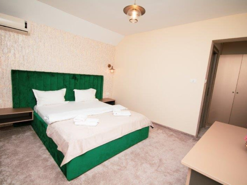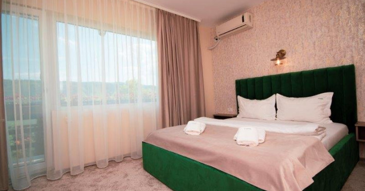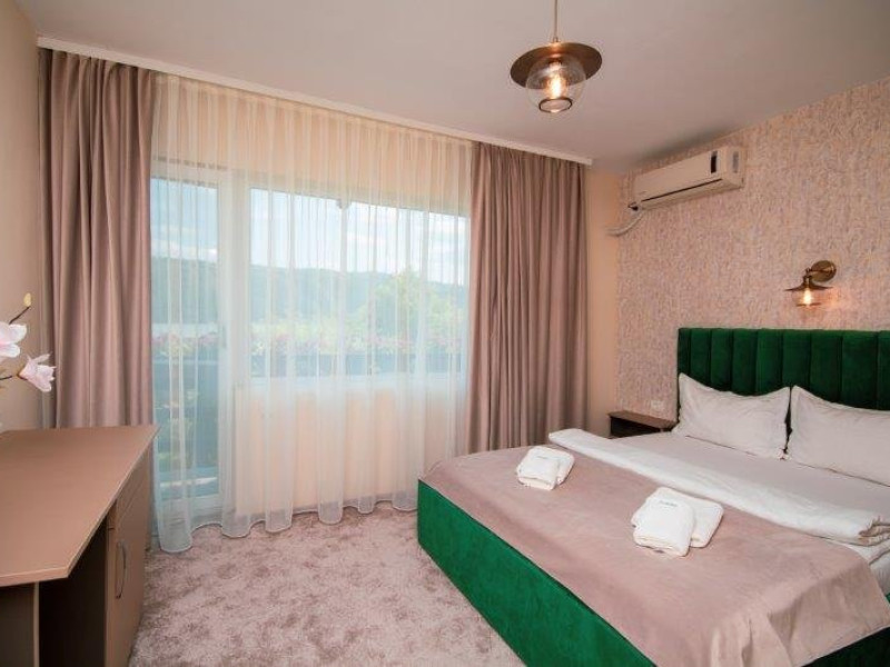 INFORMATII GENERALE Pensiunea Danubia este situata pe Clisura Dunarii, in localitatea Eselnita. Aceasta practic marcheaza inceputul defileului Dunarii ce se intinde pana aproape de Moldova Noua. DESCRIERE UNITATE DE CAZARE Pensiunea Danubia clasificata la patru margarete va intampina pe malul Dunarii, intr-un cadru natural dominat de frumusetea muntelui si a apei. Aici ospitalitatea este cuvantul ce caracterizeaza personalul, iar eleganta si confortul pe care il veti regasi in camere va vor transforma sejurul intr-o amintire de neuitat. FACILITATI UNITATE Restaurant, sala de evenimente de 200 locuri, terasa ponton, piscina exterioara, sezlonguri, ponton pentru excursii pe Dunare, internet, parcare. DESCRIERE CAMERE CAMERELE NU AU VEDERE LA DUNARE. Pensiunea Danubia clasificata la patru margarete are o capacitate totala de 17 locuri, distribuite in 5 camere duble (3 cu pat matrimonial si 2 de tip twin) si un apartament, caracterizate de un stil aparte, unic si frumos. Dotari camere: tv lcd, unele camere au balcon, acces gratuit Wi - Fi, baie cu cabina de dus, aer conditionat, uscator de par. LOCALIZARE Pensiunea Danubia se afla in Eselnita, pe malul Dunarii. ATRACTII TURISTICE Cazanele Mari si Cazanele Mici; Chipul lui Decebal; Tabula Traiana; Pestera Ponicova; Grota Veterani; Manastirea Mraconia; Manastirea Sfanta Ana; Manastirea Vodita. POLITICI Nu se accepta accesul cu animale de companie. SERVICII DE MASA Masa este sub forma de bufet sau fisa cont in functie de numarul de turisti cazati. Va oferim diversitate de la aperitiv (salata de icre), 2-3 feluri de ciorbe (nu lipseste ciorbita de peste) saramura de peste, 2-3 feluri mancare gatita, pui, peste, porc in diferite variante (prajit, gratar, cuptor) desert si apa plata. Bauturile alcoolice si racoritoare nu sunt incluse, se comanda separat la bar. FACILITATI COPII Copiii se pot caza in apartament. FACILITATI EVENIMENTE Sala de evenimente de 200 locuri.