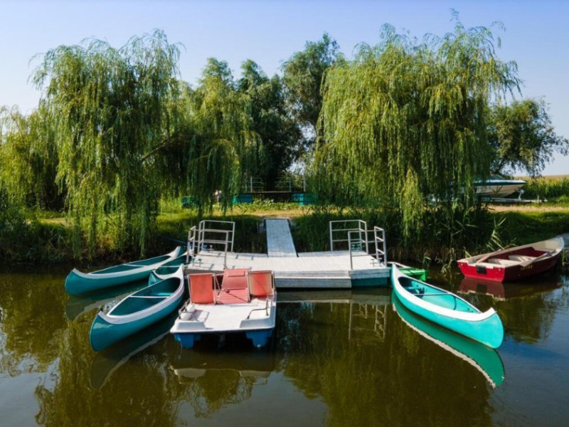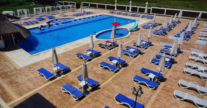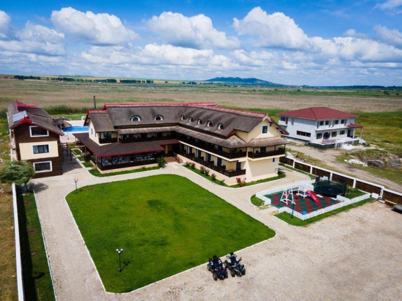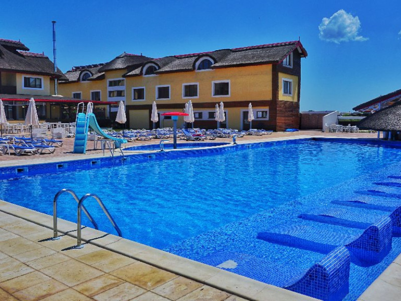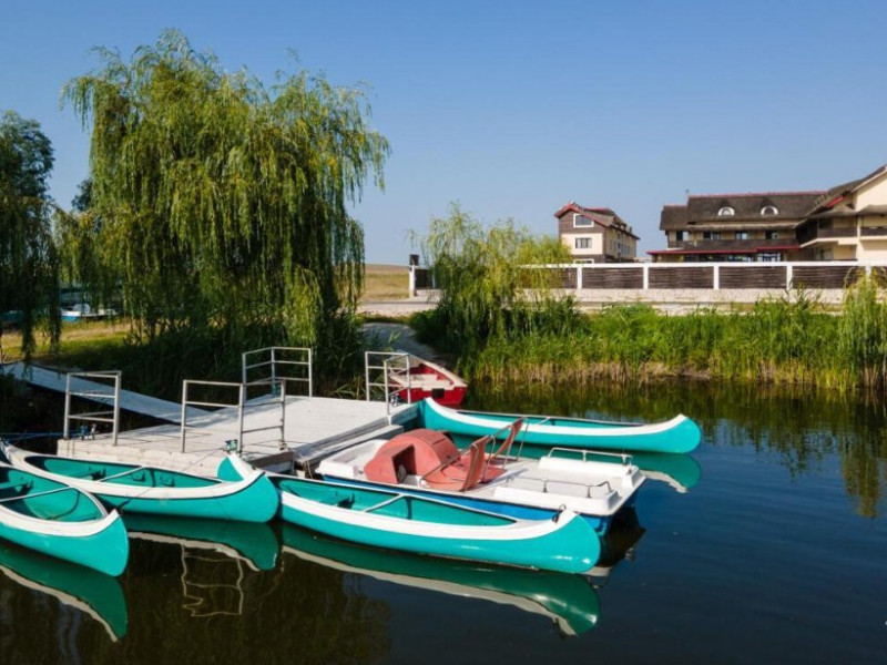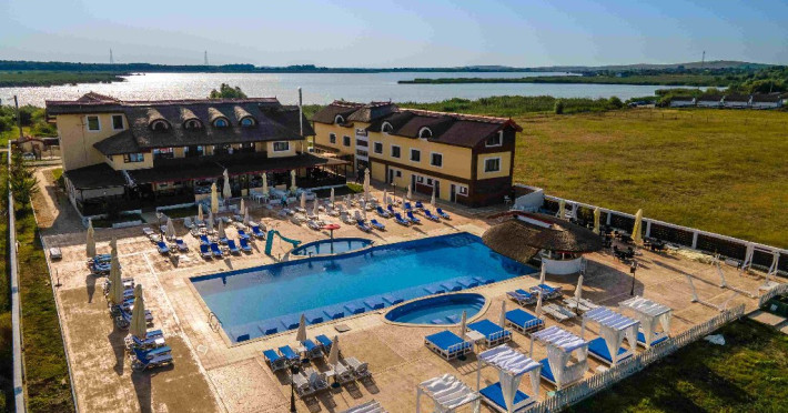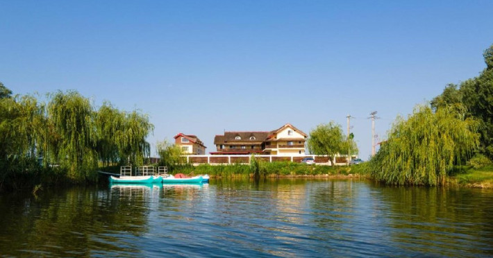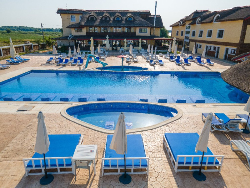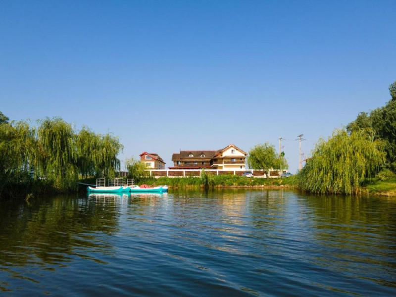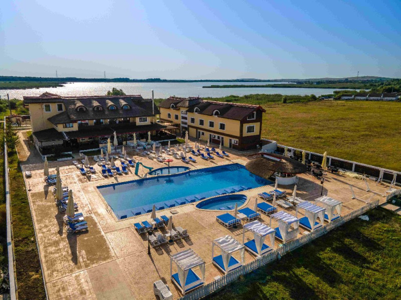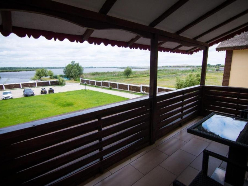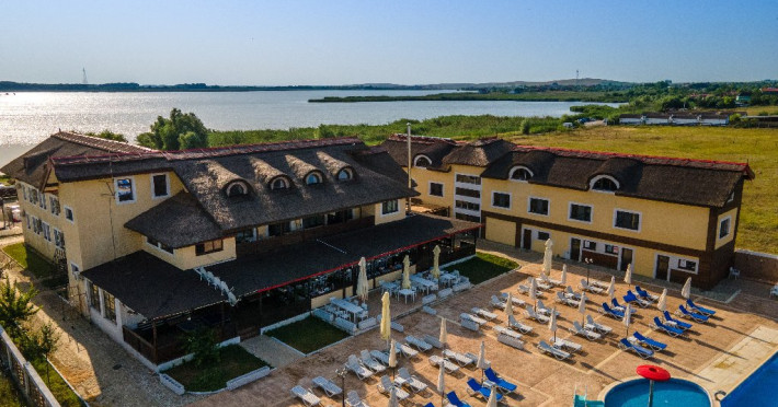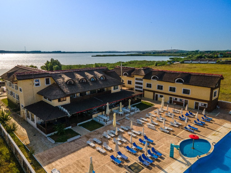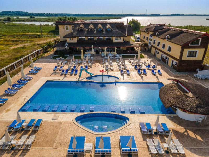 INFORMATII GENERALE Pensiunea Danubiu se afla in Delta Dunarii pe malul lacului Murighiol. DESCRIERE UNITATE DE CAZARE Locatia pune la dispozitia turistilor un restaurant cu terasa si foisoare, piscine, zona de plaja si relaxare, sala de conferinte, sala de fitness, zona de divertisment, loc de joaca pentru copii. FACILITATI UNITATE In spatele pensiunii se afla zona de plaja si relaxare cu sezlonguri si umbrele amplasate in jurul piscinei semiolimpice de 300 mp cu apa incalzita, ce dispune de bar si sezlonguri in apa, plus un jacuzzi de relaxare cu sezlonguri si canapele cu hidromasaj si o piscina pentru copii dotata cu umbrela si tobogan cu apa, langa care este amenajat un spatiu de joaca destinat copiilor. Pe malul Ghiolului Porculet se afla padocuri pentru pescuit si relaxare, un foisor din lemn cu instalatie de sunet si lumini pentru organizarea de petreceri si un foisor cu zona de barbeque cu gratar, rotisor, plita si cuptor de pizza pe lemne. Pentru petrecerea timpului liber turistii au la dispozitie sala de fitness si un salon de relaxare si divertisment, dotat cu masa de tenis, masa de biliard, masa de poker, echipamente de darts si alte jocuri precum carti de joc, table, sah. La parterul pensiunii, langa restaurant si terasa dinspre zona de agrement este amenajat un spatiu de joaca pentru copii cu o terasa acoperita. In plus, se ofera si servicii de agrement precum pescuitul sportiv, inchirieri de ATV-uri si biciclete, inchirieri de caiace, canoe, hidrobiciclete sau barci cu motor/ rame pentru plimbari pe Lacul Murighiol aflat in fata pensiunii, acolo unde este amenajat un mini port pentru ambarcatiuni si doua diguri cu padocuri din lemn de pe care se poate pescui in voie si fara taxe. DESCRIERE CAMERE Camerele Duble Premium dispun de balcon si au vedere la lac, fiind ideale pentru vacantele de familie. Camerele Duble de la mansarda nu dispun de balcon, dar ofera vedere spre lac. Apartamentul este compus din doua dormitoare cu pat matrimonial si living cu canapea extensibila, balconul cu vedere spre Lacul Murighiol intregind acest tip de camera. Suita cu vedere la lac si piscina este compusa dintr-un dormitor cu pat matrimonial si living cu canapea extensibila, dar nu are balcon. Camerele spaioase, moderne, dotate cu televizor, aer conditionat, minibar, dispun de baie proprie dotata cu cabina de dus si uscator de par ofera o vedere excelenta asupra lacurilor din jur, indiferent de pozitia din pensiune. LOCALIZARE Pensiunea se afla pe malul lacului Murighiol la o distanta de aproximativ 800 m de marginea satului Murighiol si la 38 km de municipiul Tulcea, iar accesul rutier se face usor pe un drum asfaltat. ATRACTII TURISTICE Cetatea Halmyris, Manastirea Halmyris, Lacul Murighiol. POLITICI Nu sunt acceptate animalele de companie. SERVICII DE MASA Mesele se servesc in restaurantul propriu care are o capacitate de 75 de locuri in interior, in timp ce terasele exterioare au 150 de locuri. FACILITATI COPII Piscina pentru copii cu umbrela si tobogan cu apa, loc de joaca acoperit. Se poate adauga maxim un pat suplimentar doar in camera dubla cu balcon. FACILITATI EVENIMENTE Pensiunea ofera o sala de conferinte cu o capacitate de 75 locuri.