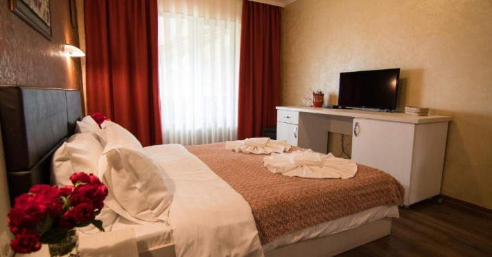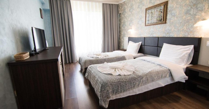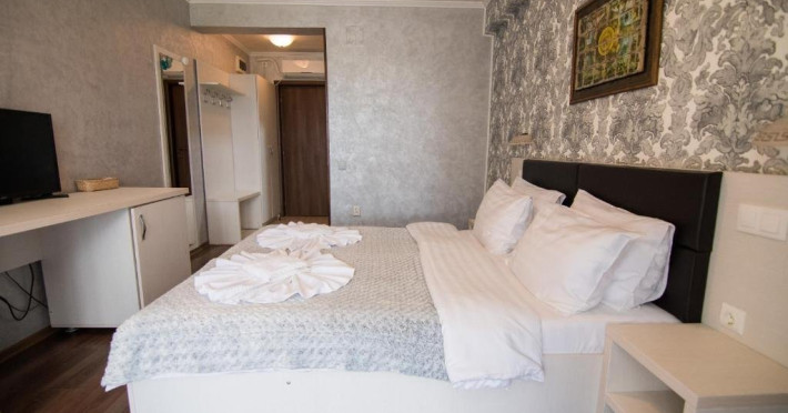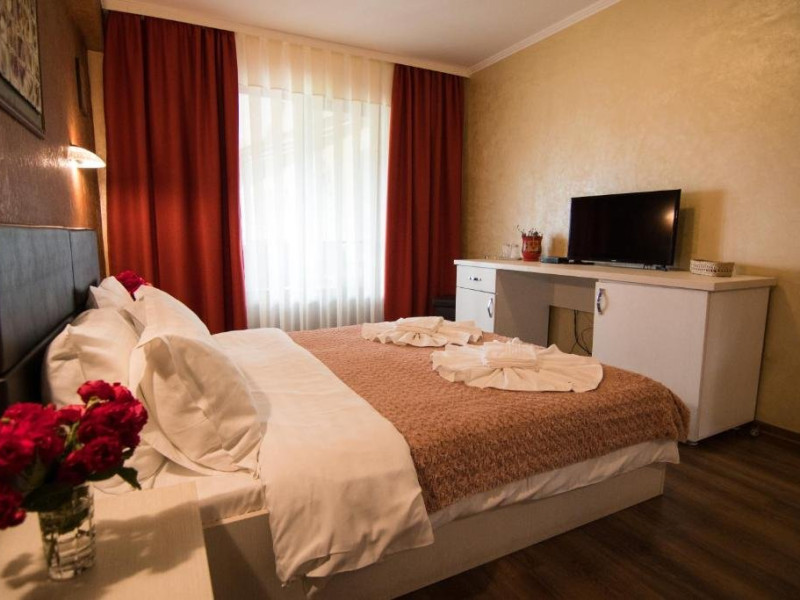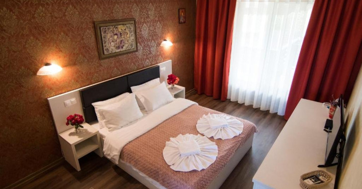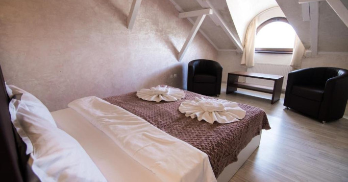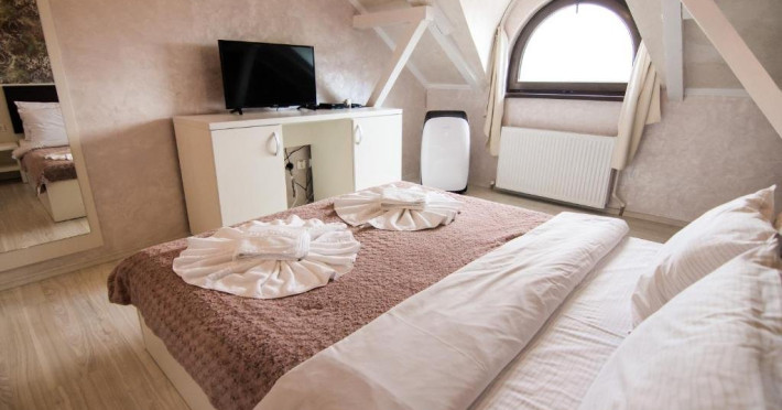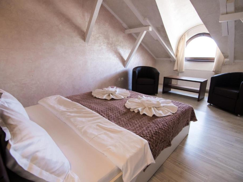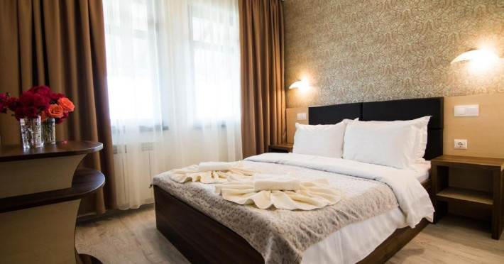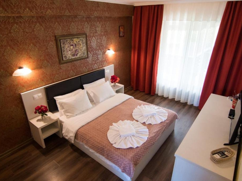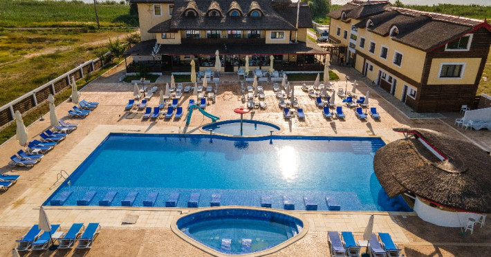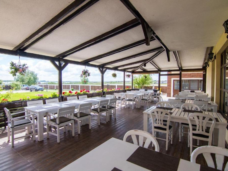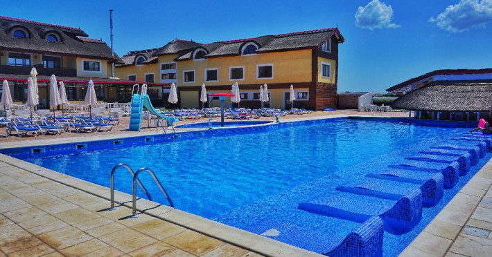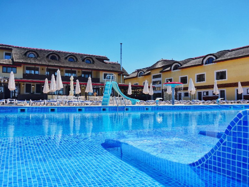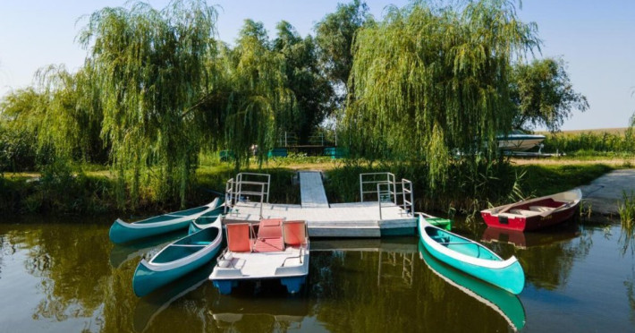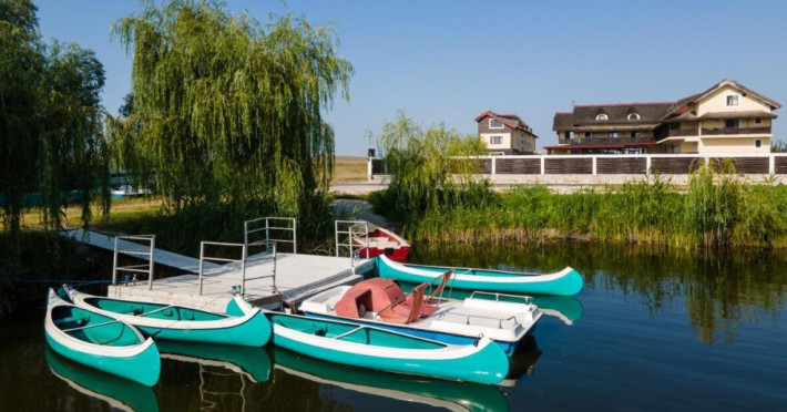 INFORMATII GENERALE Pensiunea Danubiu se afla in Delta Dunarii pe malul lacului Murighiol. DESCRIERE UNITATE DE CAZARE Locatia pune la dispozitia turistilor un restaurant cu terasa si foisoare, piscine, zona de plaja si relaxare, sala de conferinte, sala de fitness, zona de divertisment, loc de joaca pentru copii. FACILITATI UNITATE In spatele pensiunii se afla zona de plaja si relaxare cu sezlonguri si umbrele amplasate in jurul piscinei semiolimpice de 300 mp cu apa incalzita, ce dispune de bar si sezlonguri in apa, plus un jacuzzi de relaxare cu sezlonguri si canapele cu hidromasaj si o piscina pentru copii dotata cu umbrela si tobogan cu apa, langa care este amenajat un spatiu de joaca destinat copiilor. Pe malul Ghiolului Porculet se afla padocuri pentru pescuit si relaxare, un foisor din lemn cu instalatie de sunet si lumini pentru organizarea de petreceri si un foisor cu zona de barbeque cu gratar, rotisor, plita si cuptor de pizza pe lemne. Pentru petrecerea timpului liber turistii au la dispozitie sala de fitness si un salon de relaxare si divertisment, dotat cu masa de tenis, masa de biliard, masa de poker, echipamente de darts si alte jocuri precum carti de joc, table, sah. La parterul pensiunii, langa restaurant si terasa dinspre zona de agrement este amenajat un spatiu de joaca pentru copii cu o terasa acoperita. In plus, se ofera si servicii de agrement precum pescuitul sportiv, inchirieri de ATV-uri si biciclete, inchirieri de caiace, canoe, hidrobiciclete sau barci cu motor/ rame pentru plimbari pe Lacul Murighiol aflat in fata pensiunii, acolo unde este amenajat un mini port pentru ambarcatiuni si doua diguri cu padocuri din lemn de pe care se poate pescui in voie si fara taxe. DESCRIERE CAMERE Camerele Duble Premium dispun de balcon si au vedere la lac, fiind ideale pentru vacantele de familie. Camerele Duble de la mansarda nu dispun de balcon, dar ofera vedere spre lac. Apartamentul este compus din doua dormitoare cu pat matrimonial si living cu canapea extensibila, balconul cu vedere spre Lacul Murighiol intregind acest tip de camera. Suita cu vedere la lac si piscina este compusa dintr-un dormitor cu pat matrimonial si living cu canapea extensibila, dar nu are balcon. Camerele spaioase, moderne, dotate cu televizor, aer conditionat, minibar, dispun de baie proprie dotata cu cabina de dus si uscator de par ofera o vedere excelenta asupra lacurilor din jur, indiferent de pozitia din pensiune. LOCALIZARE Pensiunea se afla pe malul lacului Murighiol la o distanta de aproximativ 800 m de marginea satului Murighiol si la 38 km de municipiul Tulcea, iar accesul rutier se face usor pe un drum asfaltat. ATRACTII TURISTICE Cetatea Halmyris, Manastirea Halmyris, Lacul Murighiol. POLITICI Nu sunt acceptate animalele de companie. SERVICII DE MASA Mesele se servesc in restaurantul propriu care are o capacitate de 75 de locuri in interior, in timp ce terasele exterioare au 150 de locuri. FACILITATI COPII Piscina pentru copii cu umbrela si tobogan cu apa, loc de joaca acoperit. Se poate adauga maxim un pat suplimentar doar in camera dubla cu balcon. FACILITATI EVENIMENTE Pensiunea ofera o sala de conferinte cu o capacitate de 75 locuri.