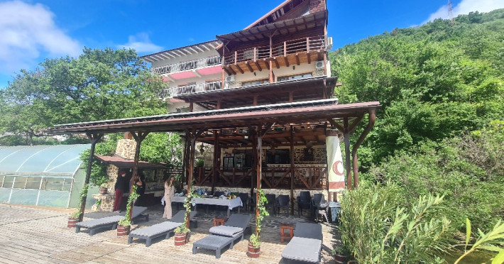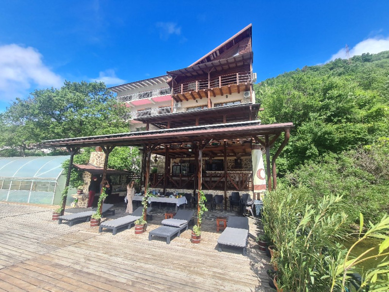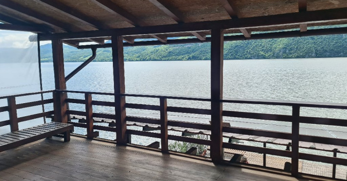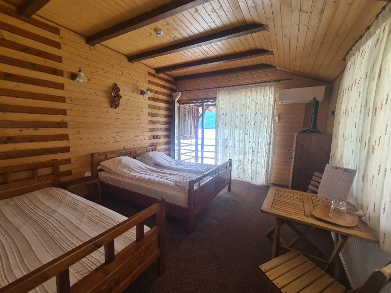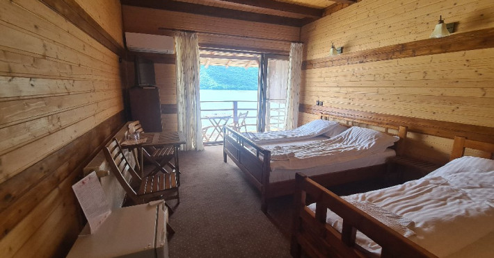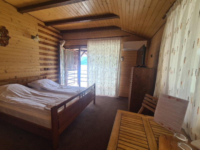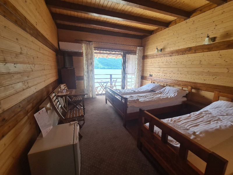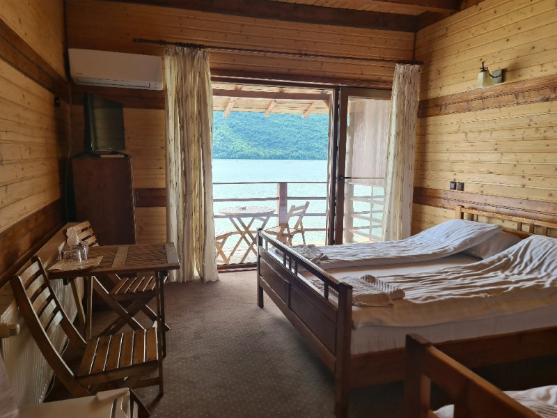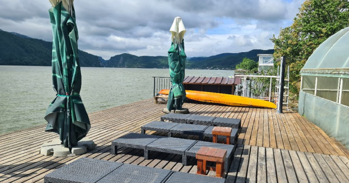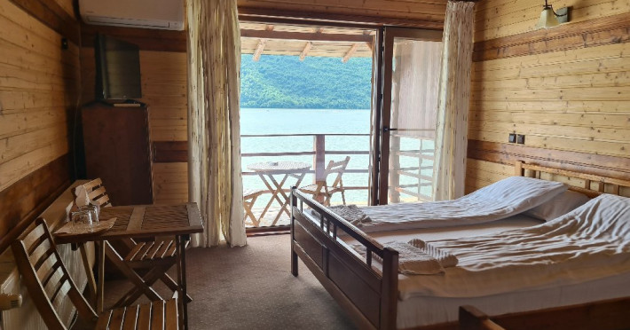 INFORMATII GENERALE Pensiunea Dulce Cabana este localizata pe DN 57 in localitatea Eselnita, zona Cazanele Dunarii, la aproximativ 4 km de sculptura Chipul lui Decebal din Parcul Natural Mraconia. DESCRIERE UNITATE DE CAZARE Locatia este o oaza de liniste, cu o atmosfera rustica autentica, camere decorate cu lemn, unele cu vedere la Dunare. FACILITATI UNITATE Spatiile comune includ un ponton pe Dunare, terasa, restaurant, posibilitate de petrecere a timpului liber prin plimbari pe Dunare. Locatia dispune si de parcare proprie. DESCRIERE CAMERE Locatia ofera 4 camere duble si 3 camere triple. Camerele duble dispun de pat matrimonial, iar doua dintre acestea dispun de aer conditionat. Camerele care nu dispun de aer conditionat sunt amplasate in lateralul pensiunii si beneficiaza de o zona umbrita. O parte din camerele duble ofera si balcon.Camerele triple dispun de un pat matrimonial si un pat single, toate dispun de balcon dar numai doua dintre acestea ofera aer conditionat. Toate camerele includ TV, baie proprie. LOCALIZARE Pensiunea Dulce Cabana este localizata pe DN 57 in localitatea Eselnita, zona Cazanele Dunarii, la aproximativ 4 km de sculptura Chipul lui Decebal din Parcul Natural Mraconia. ATRACTII TURISTICE Pestera Gaura Chindiei II, Pestera Veterani, Pestera Haiducilor, Cetatea Trikule, Cetatea Ladislau, Cazanele Mari si Cazanele Mici, Chipul lui Decebal, Manastiri cum ar fi Vodita, Sfanta Ana, Mraconia. POLITICI Nu se accepta accesul cu animale de companie. SERVICII DE MASA In locatie se pot servi micul dejun (servit individual) si cina (a la carte). FACILITATI COPII Copiii mai mari de 5 ani se pot caza in camera tripla. FACILITATI EVENIMENTE Se pot organiza evenimente festive in restaurant.