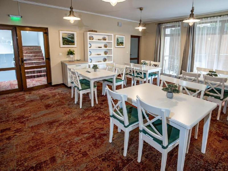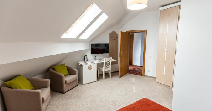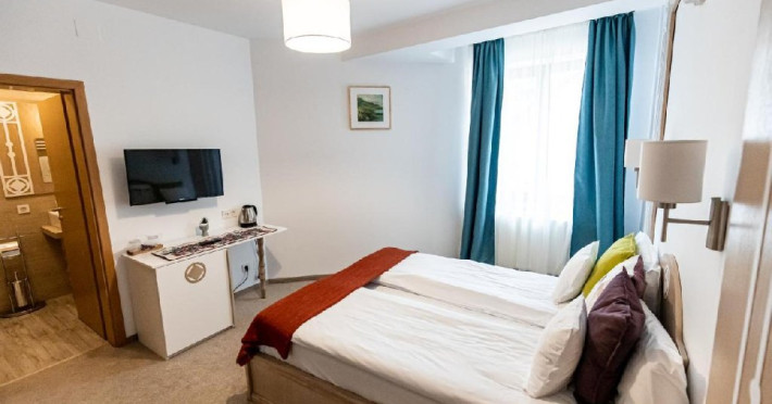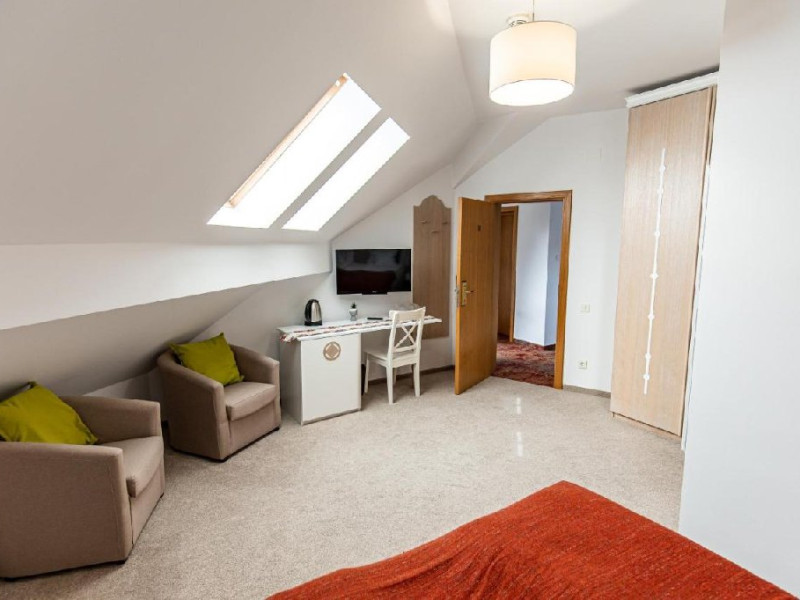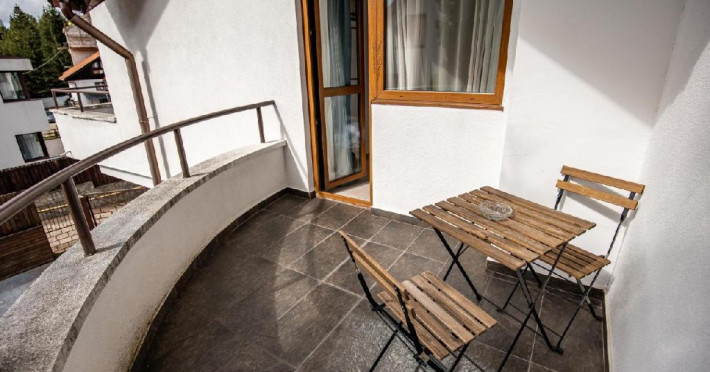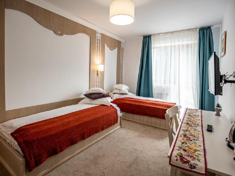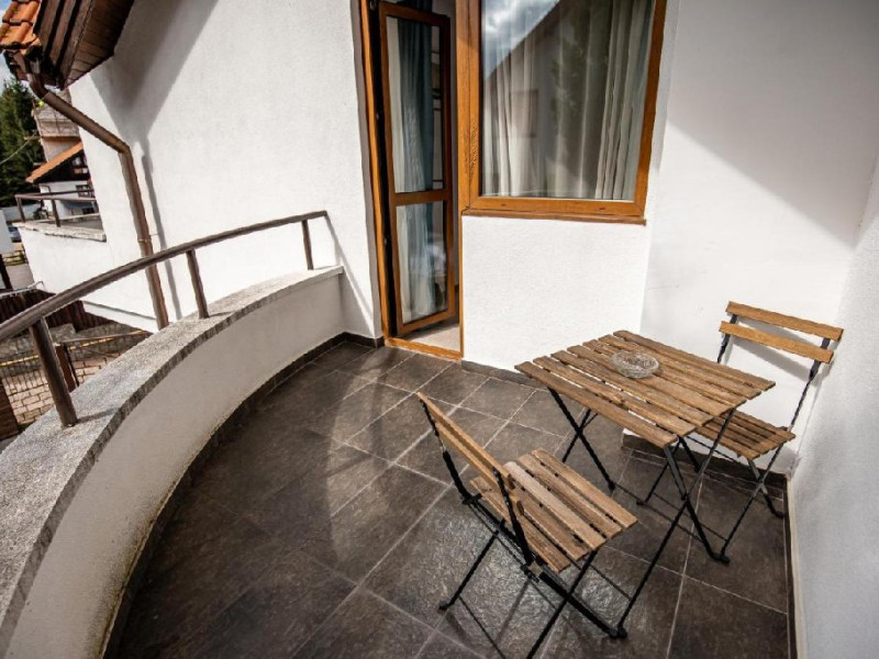 INFORMATII GENERALE Pensiunea Monti Chalet se afla in statiunea Poiana Brasov, la doar 10 minute de mers pe jos de partiile de schi. La intersectia dintre confort si comoditate se afla Monti Chalet, unde puteti profita din plin de numeroasele facilitati si servicii care va vor face sedere de neuitat. DESCRIERE UNITATE DE CAZARE Locatia cauta sa ofere atentie turistilor cu un personal atent pentru a face sederea cat mai placuta oaspetilor. FACILITATI UNITATE Proprietatea dispune de sauna si jacuzzi, Wi-Fi, parcare in limita locurilor disponibile. DESCRIERE CAMERE Camera dubla standard fara balcon si camera dubla superioara cu balcon dispun de pat matrimonial. Camera dubla twin dispune de doua paturi single. Toate camerele sunt decorate cu gust, cu mobilier de inalta calitate, design minimalist, baie privata cu uscator de par, televizoare cu ecran plat, ceainic, articole de toaleta. LOCALIZARE Pensiunea Monti Chalet se afla in statiunea Poiana Brasov, la doar 10 minute de mers pe jos de partiile de schi. ATRACTII TURISTICE Castelul Bran, Castelul Peles, Cetatea Rasnov, Biserica Neagra, Dino Parc. POLITICI Nu se accepta animale de companie. SERVICII DE MASA Micul dejun se serveste la Pensiunea Artemis, la 50 m de Monti Chalet. FACILITATI COPII In locatie se pot caza copii cu varste de pana la 5 ani.