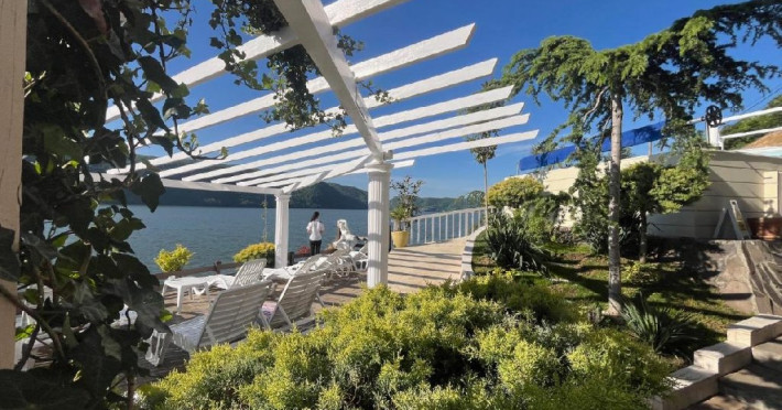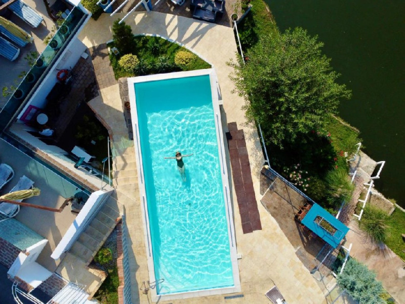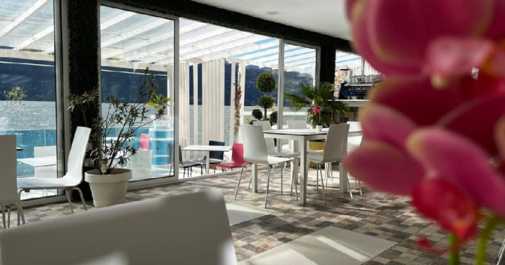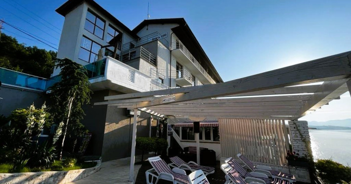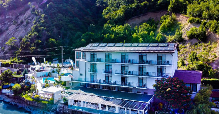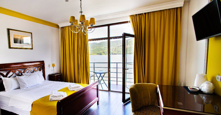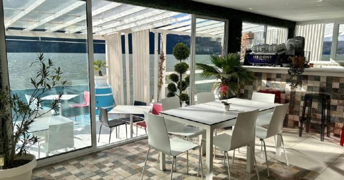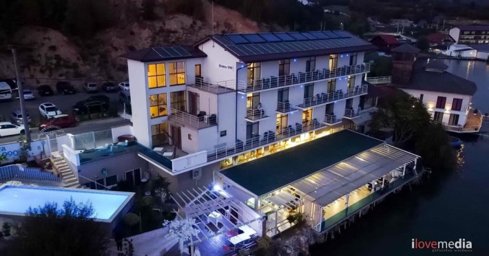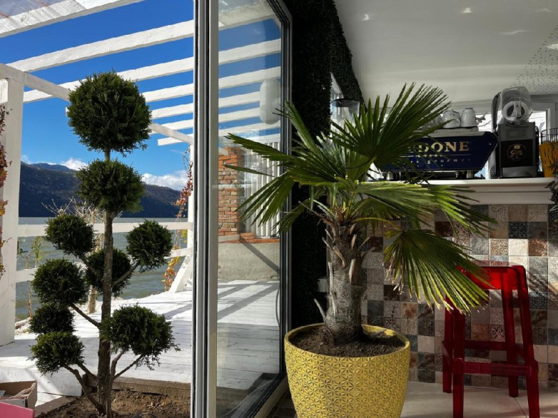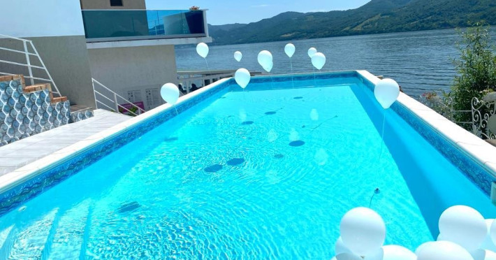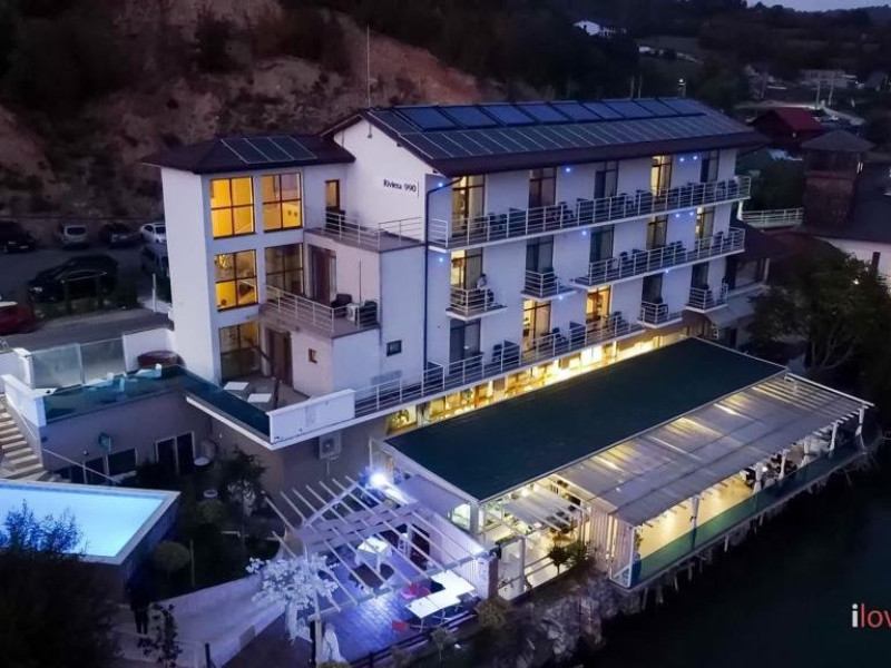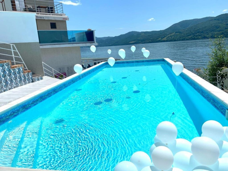 INFORMATII GENERALE Pensiunea Riviera 990 este localizata pe DN 57 in localitatea Eselnita, zona Cazanele Dunarii, la aproximativ 4 km de sculptura Chipul lui Decebal din Parcul Natural Mraconia. DESCRIERE UNITATE DE CAZARE Complex modern cu facilitati de relaxare, cu vedere spre Cazanele Dunarii, personal amabila si preparate gustoase. FACILITATI UNITATE Spatiile comune includ un ponton pe Dunare, terasa, piscina cu sezlonguri, jacuzzi si posibilitate de petrecere a timpului liber prin plimbari pe Dunare cu barca. Locatia dispune si de parcare proprie. DESCRIERE CAMERE Toate camerele dispun de balcon cu vedere la Dunare si sunt dotate cu TV, baie proprie. LOCALIZARE Pensiunea Riviera 990 este localizata pe DN 57 in localitatea Eselnita, zona Cazanele Dunarii, la aproximativ 4 km de sculptura Chipul lui Decebal din Parcul Natural Mraconia. ATRACTII TURISTICE Pestera Gaura Chindiei II, Pestera Veterani, Pestera Haiducilor, Cetatea Trikule, Cetatea Ladislau, Cazanele Mari si Cazanele Mici, Chipul lui Decebal, Manastiri cum ar fi Vodita, Sfanta Ana, Mraconia. POLITICI Nu se accepta accesul cu animale de companie. SERVICII DE MASA Mesele se servesc in restaurantul propriu. FACILITATI COPII Copiii mai mari de 5 ani se pot caza in camera dubla deluxe. FACILITATI EVENIMENTE Se pot organiza evenimente festive in restaurant si pe terasa.
