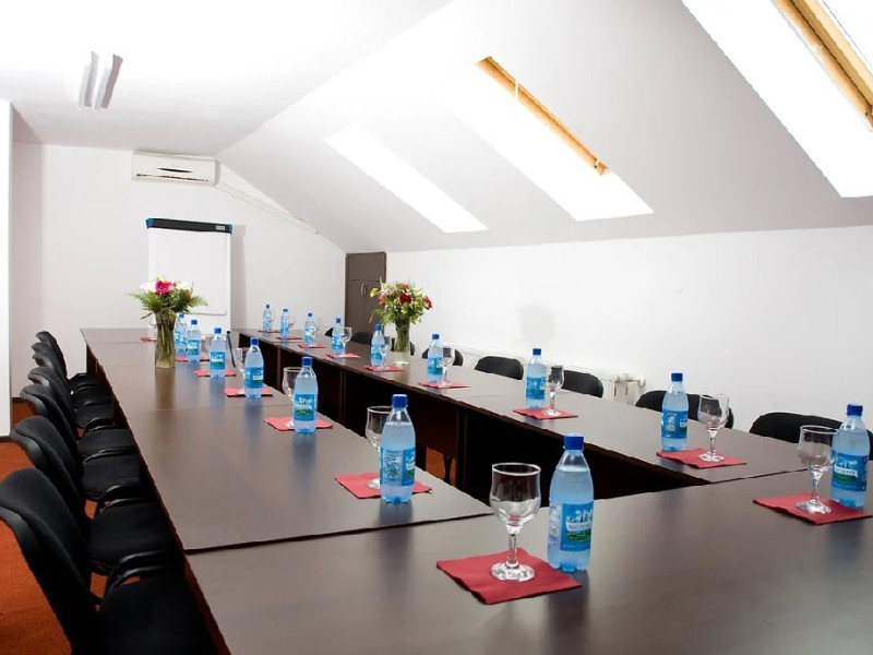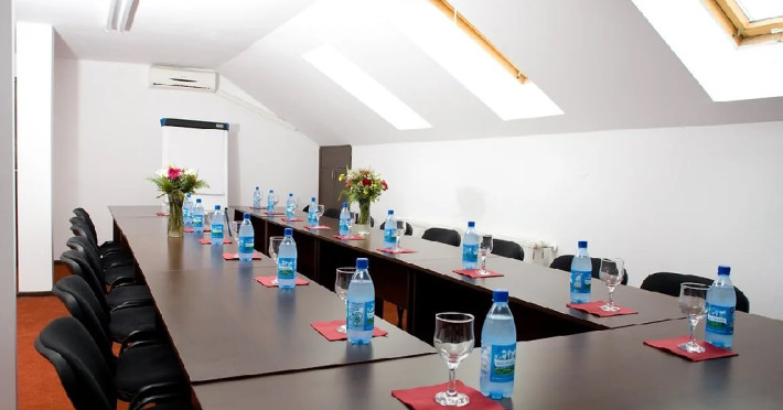FACILITATI EVENIMENTE: Sali de conferinta: 1 - Sala de conferinta are o capacitate de 40 de locur iin aranjament teatru si dispune de spatiu de servire coffee break, acces gratuit la internet, flipchart, videoproiector si aer conditionat.