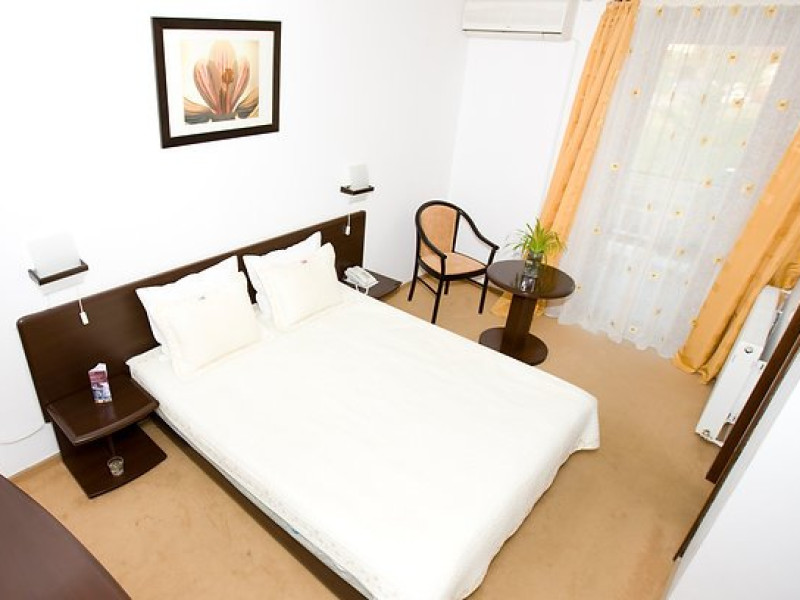 DESCRIERE CAMERE Pensiunea dispune de 13 camere (2 single, 8 duble, 3 garsoniere). Dotari camere: baie cu dus, aer conditionat, TV, minibar, telefon, acces internet wireless. Unele camere sunt situate la mansarda, iar unele dispun de balcon.