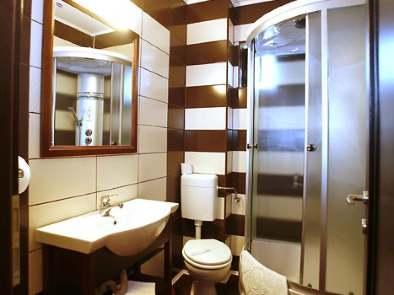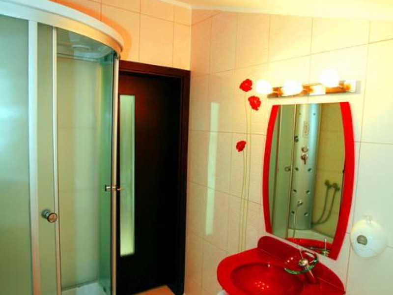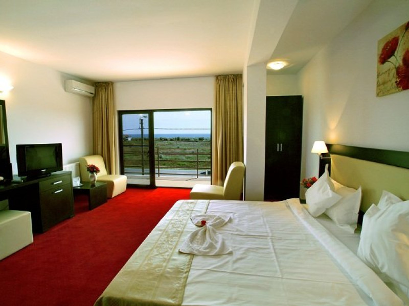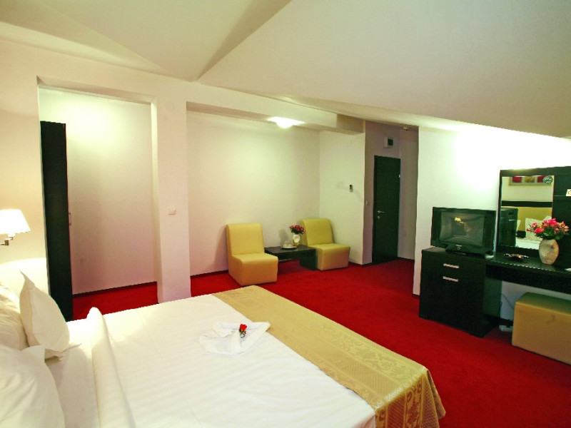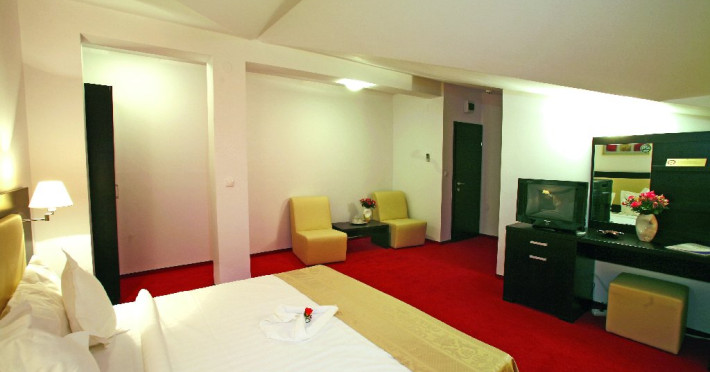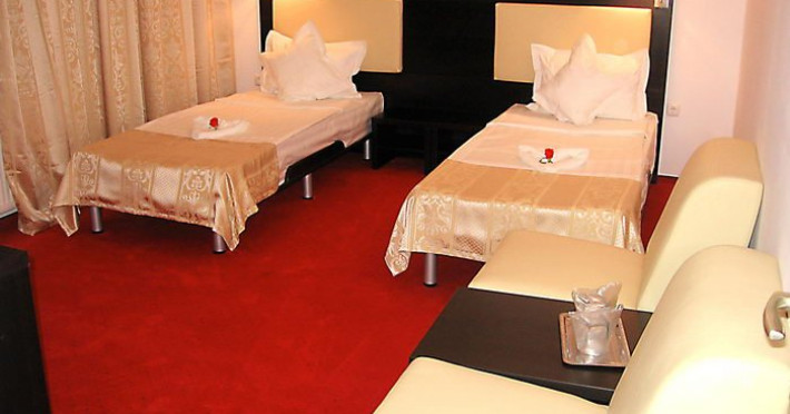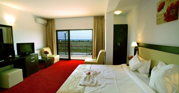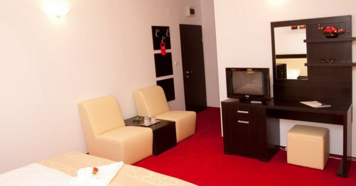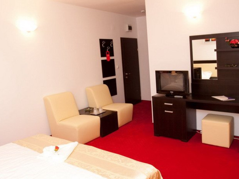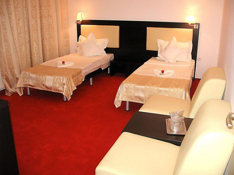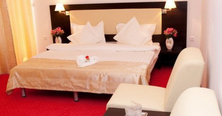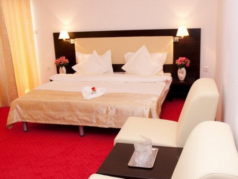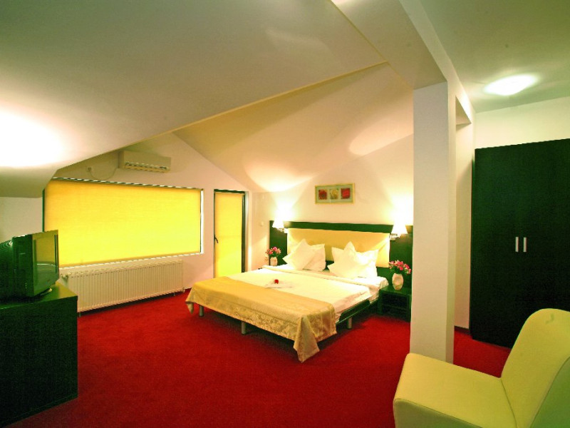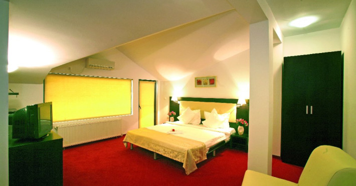 DESCRIERE CAMERE Dotari camere: aer conditionat, TV, minibar, baie proprie cu cabina hidromasaj, internet wi-fi, uscator de par, papuci, birou. Numar total camere: 14 Duble Matriminoniale: 6 Duble Twin: 4 (la cerere pot fi transformate in camere matrimoniale, se unesc paturile si se pune saltea peste) Garsoniere: 4 (este dotata cu o canapea extensibila)